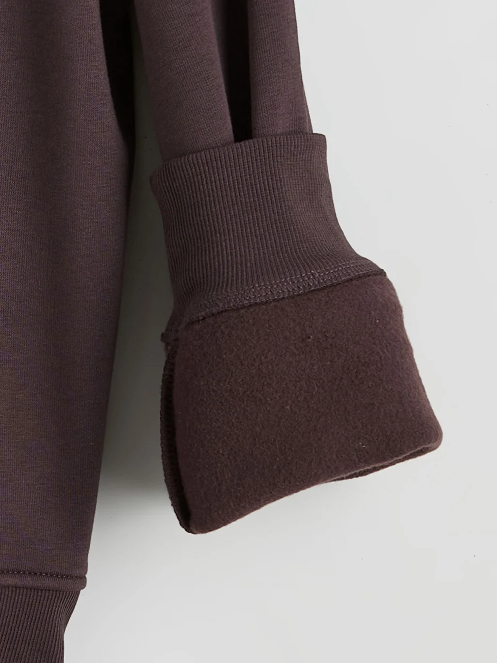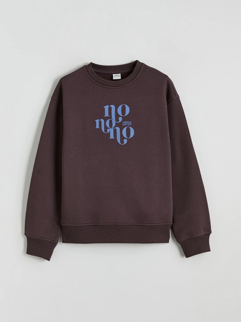 Yüksek pamuk içerikli kalın kumaştan üretilen kız çocuk sweatshirt, bisiklet yaka ve uzun kolludur. Önü yazı baskılıdır, kol ve etek ucu ribanalıdır.