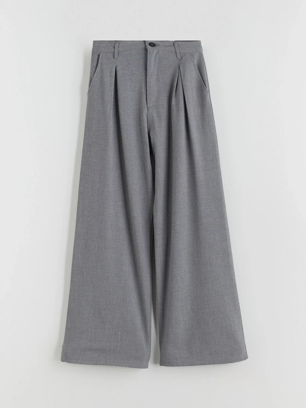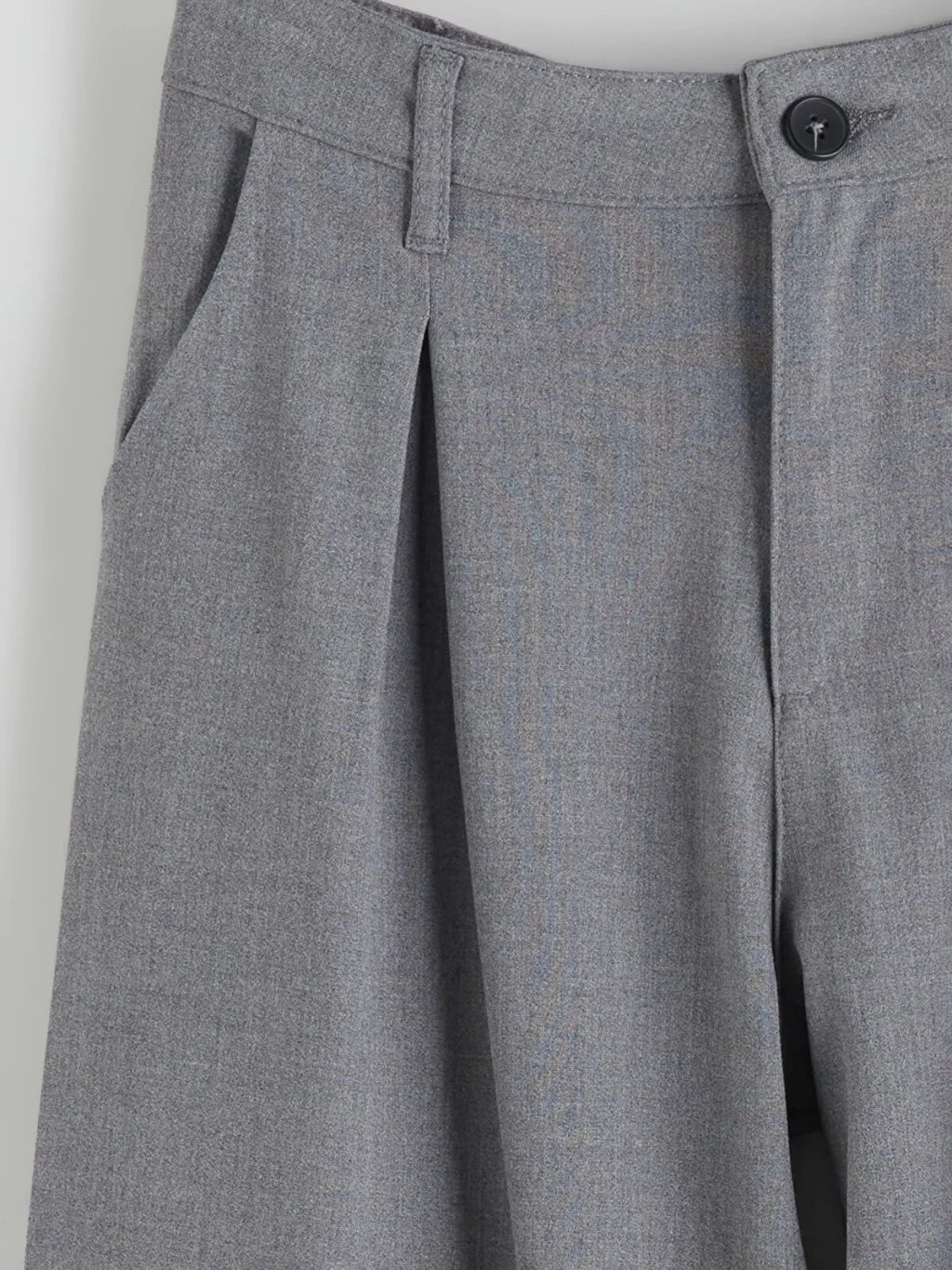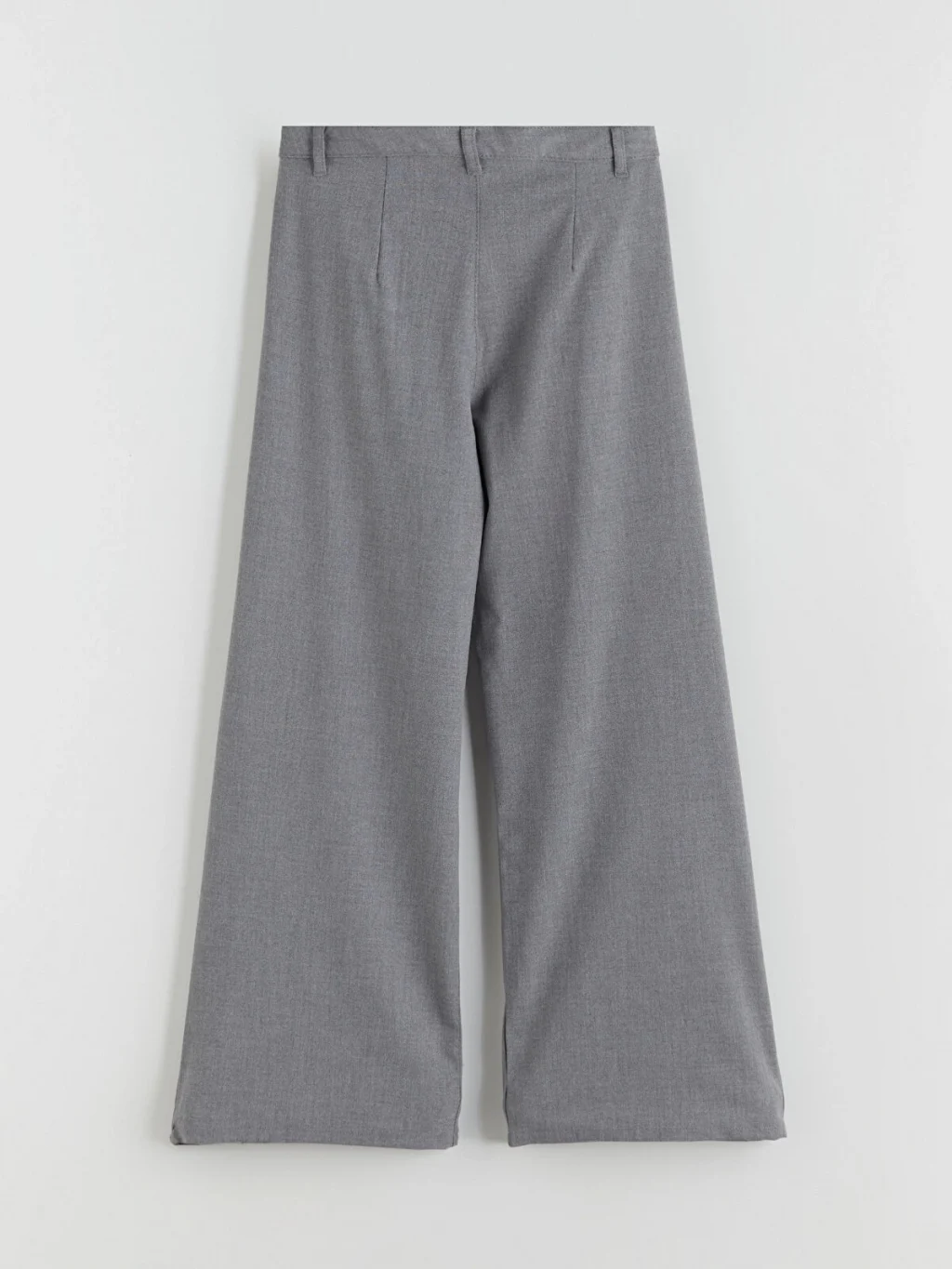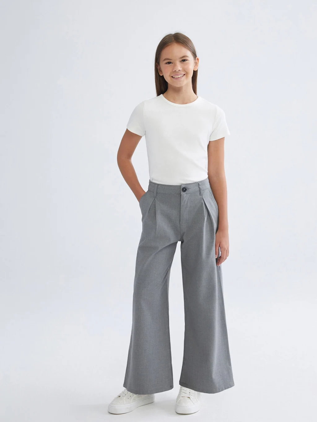 Wideleg kız çocuk pantolon, yüksel bel ve geniş paça kesime sahiptir. Pileli ve beli içten ayarlanabilir lastiklidir.