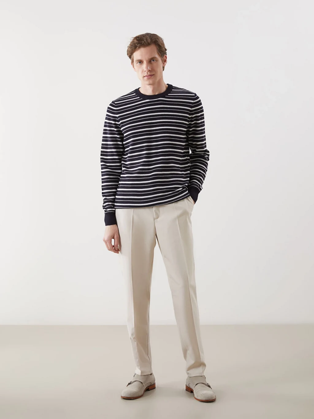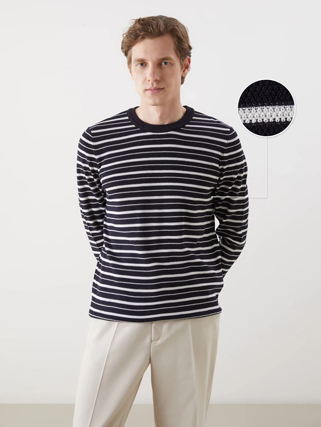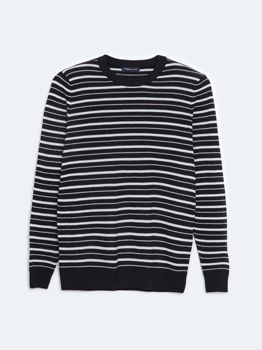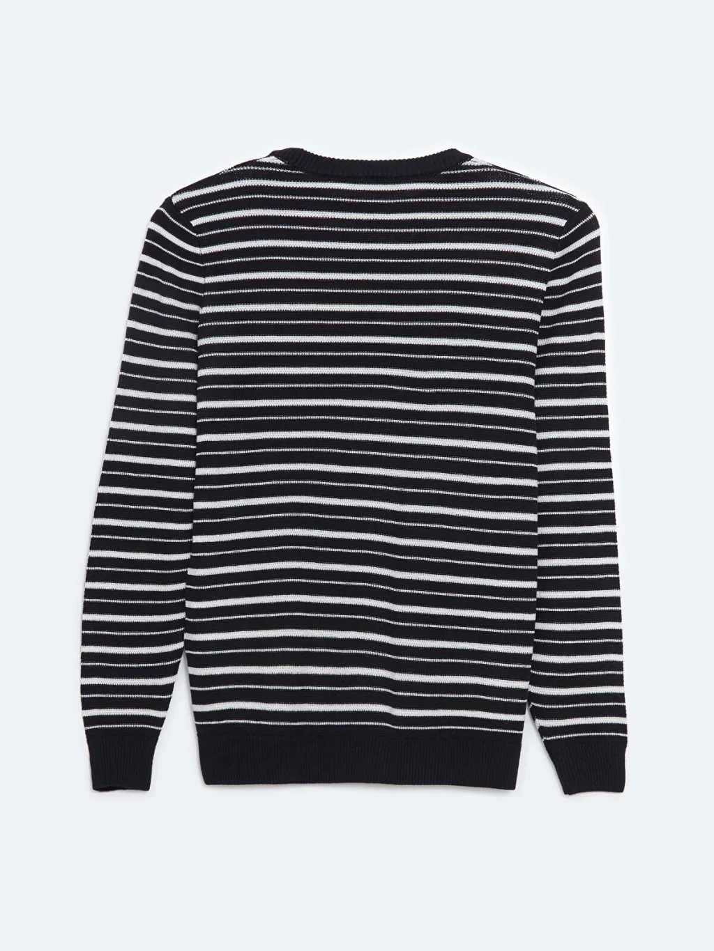 Triko kumaştan üretilen bu uzun kollu kazak, çizgili deseniyle modern bir görünüm sunuyor. Hem rahat hem de şık bir seçenek olan bu kazak, soğuk günlerde sizi sıcak tutacak.