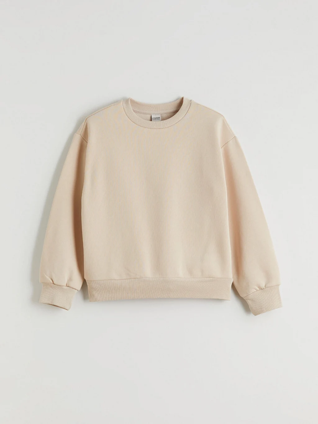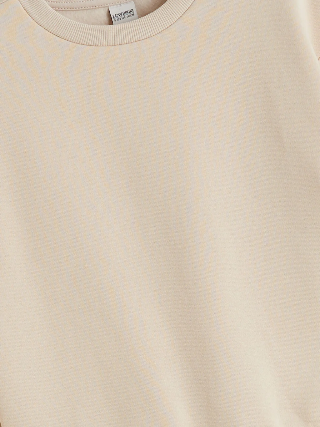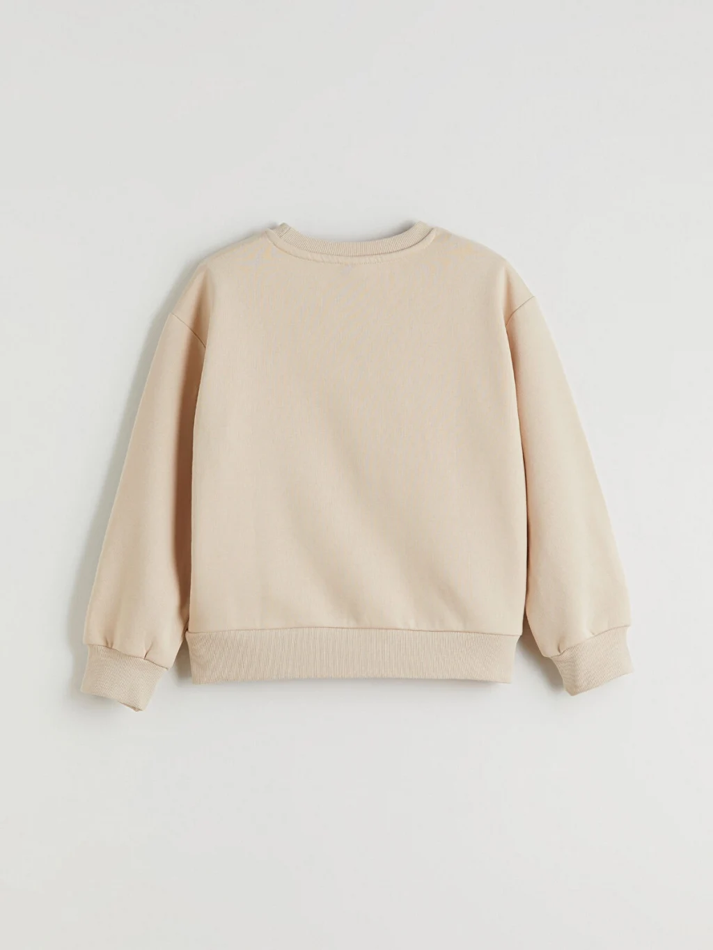 Bisiklet yakalı ve uzun kollu kız çocuk sweatshirt, kalın 3 iplik şardonlu kumaştan üretilmiştir. Kol manşetleri ve etek ucu ribanalıdır.