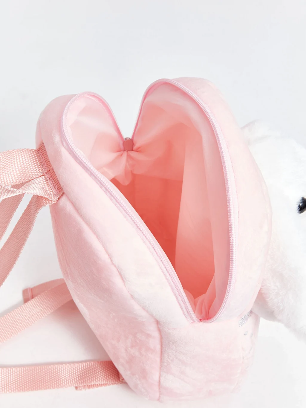 Hem şirin bir aksesuar hem de pratik bir sırt çantası olarak kullanılabilir. Fermuarlı bölmesi eşyalarınızı güvenle saklamanızı sağlarken, yumuşak taşıma kolları rahatlık sunar.