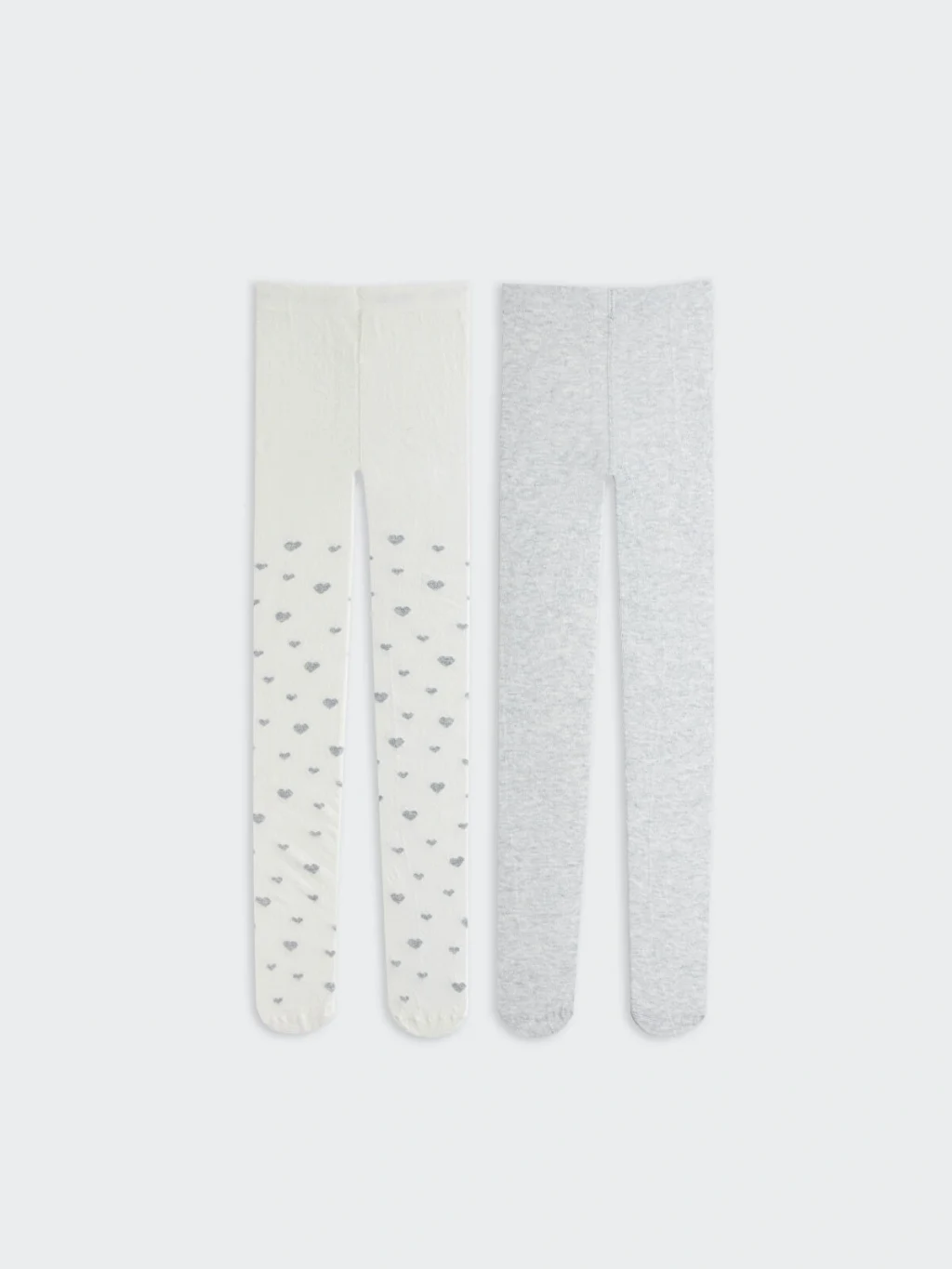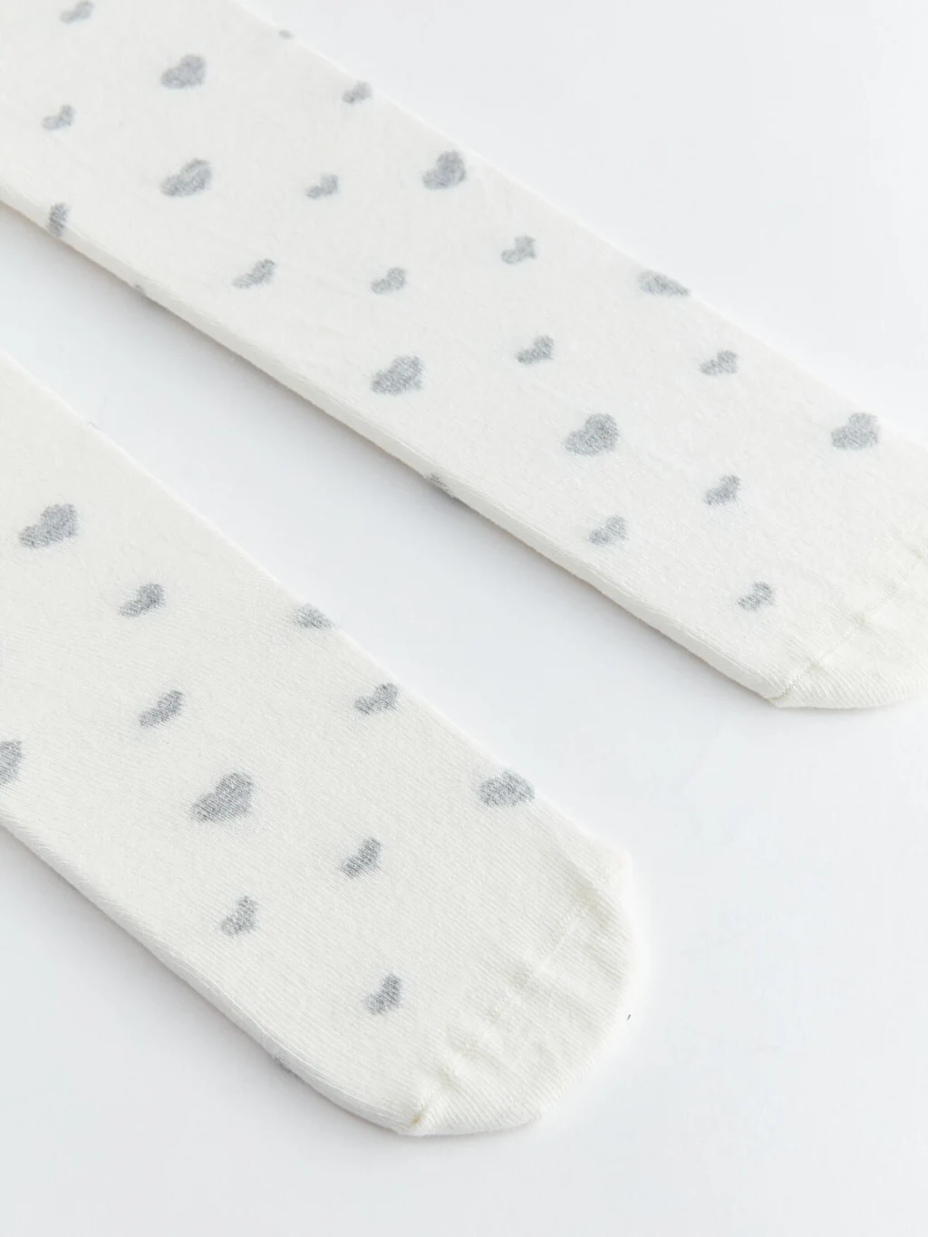 Desenli Kız Çocuk Külotlu Çorap 2'li setten oluşup, pamuk karışımlı esnek kumaştan üretilmiştir.