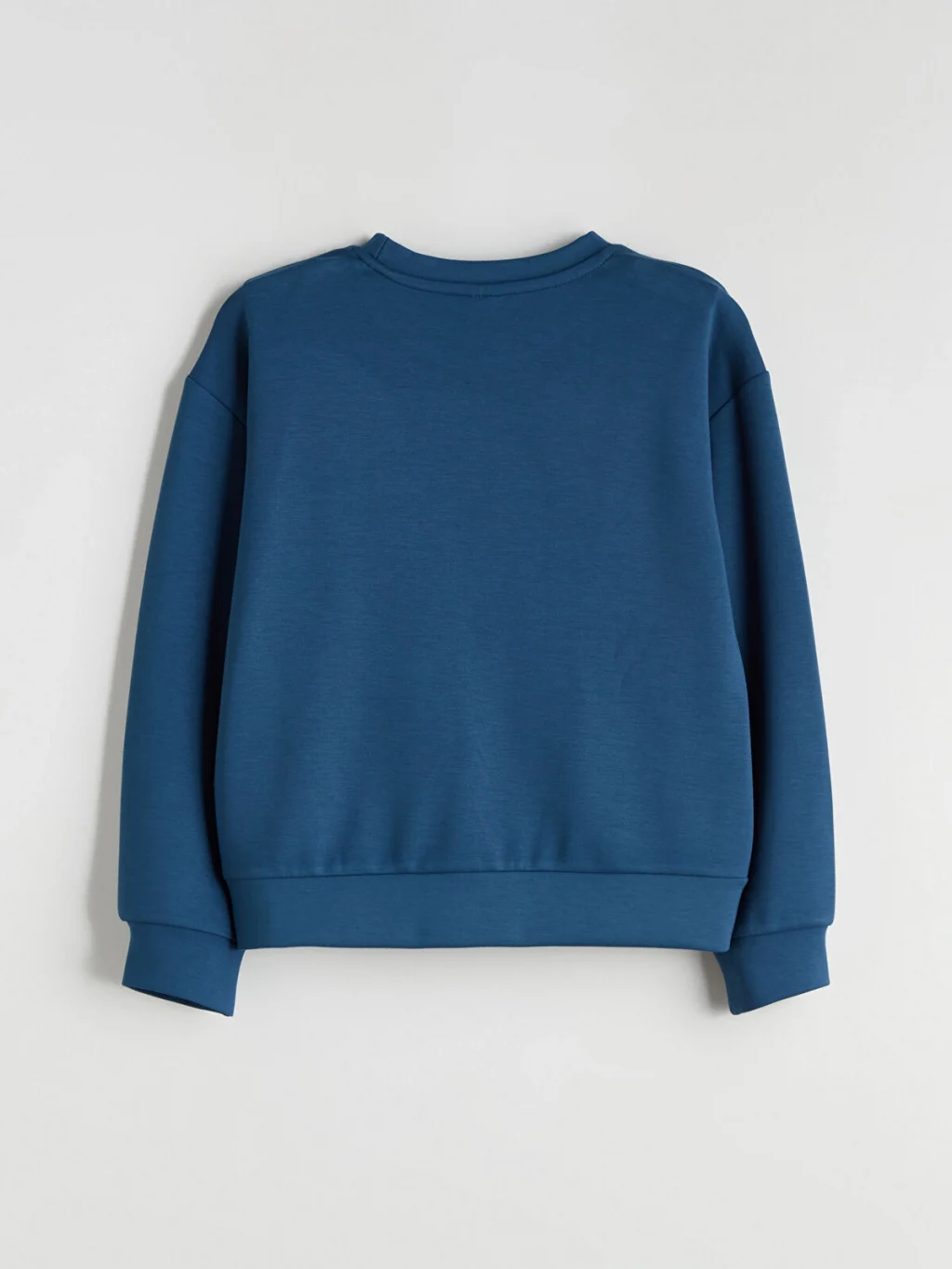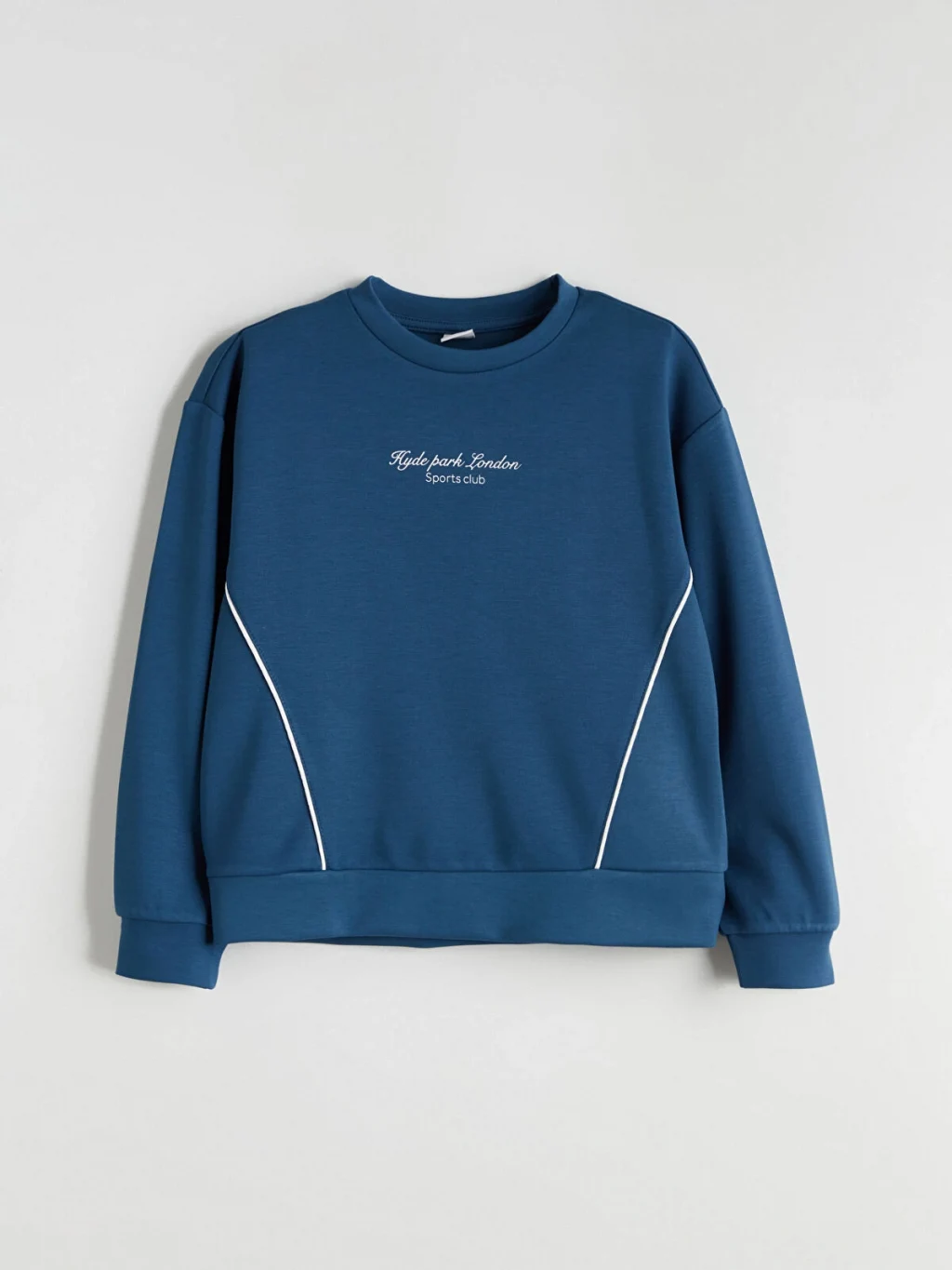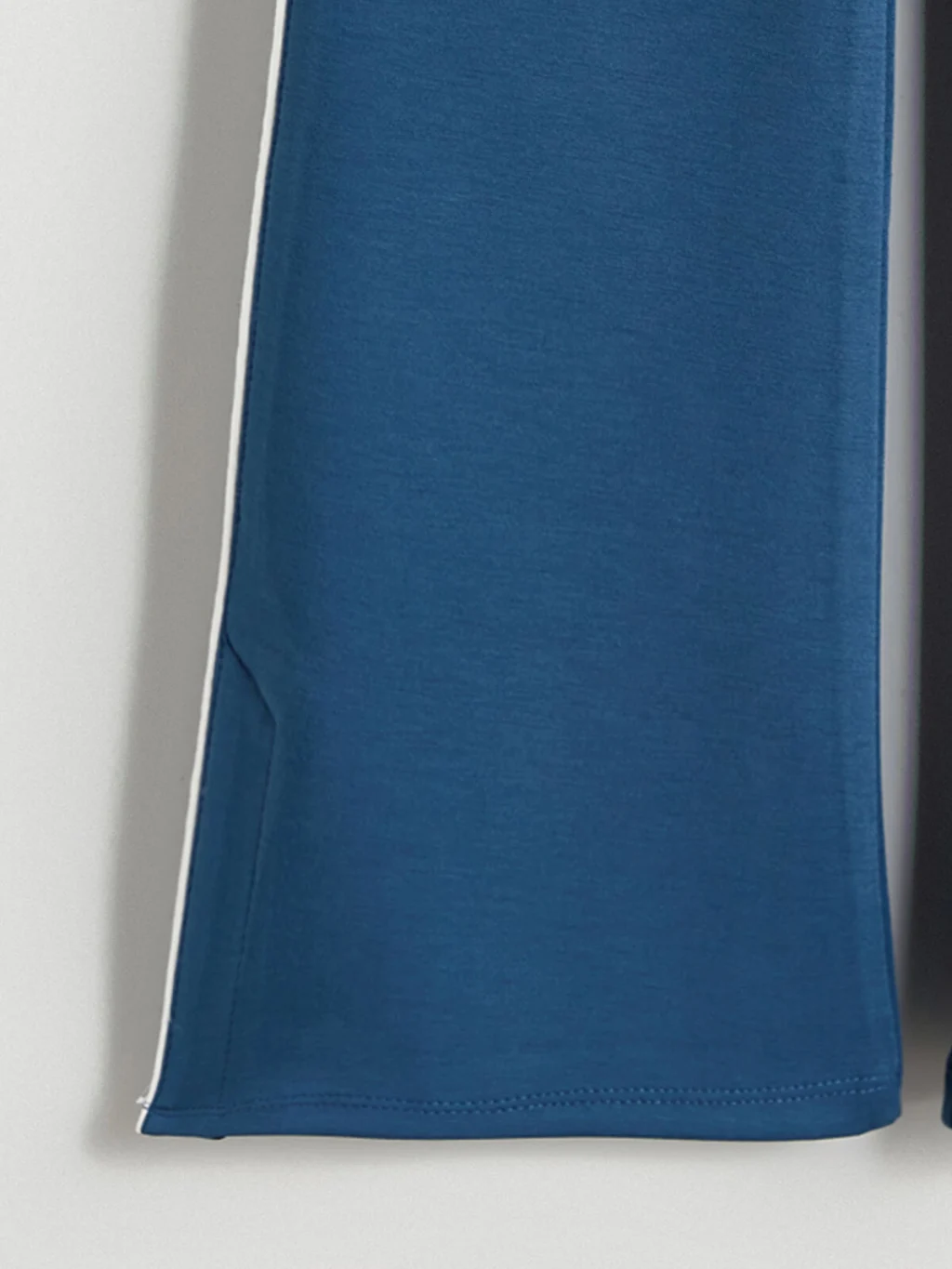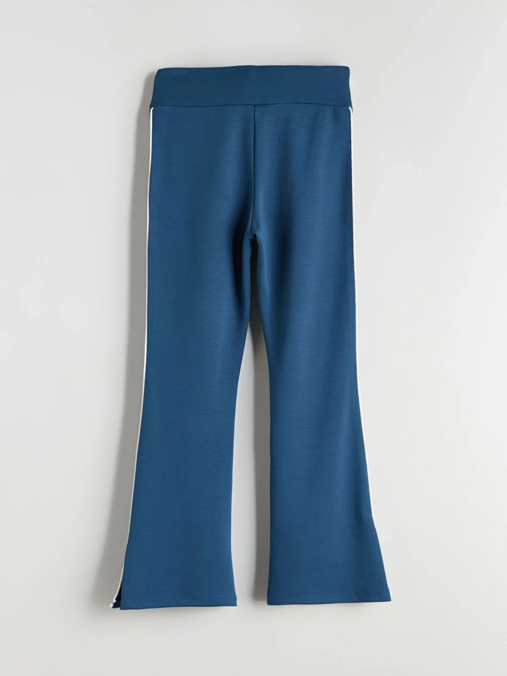 Kız çocuk eşofman takımı; bisiklet yaka, uzun kollu, biye detaylı sweatshirt ve beli lastikli, paçası yırtmaçlı eşofman alttan oluşur.