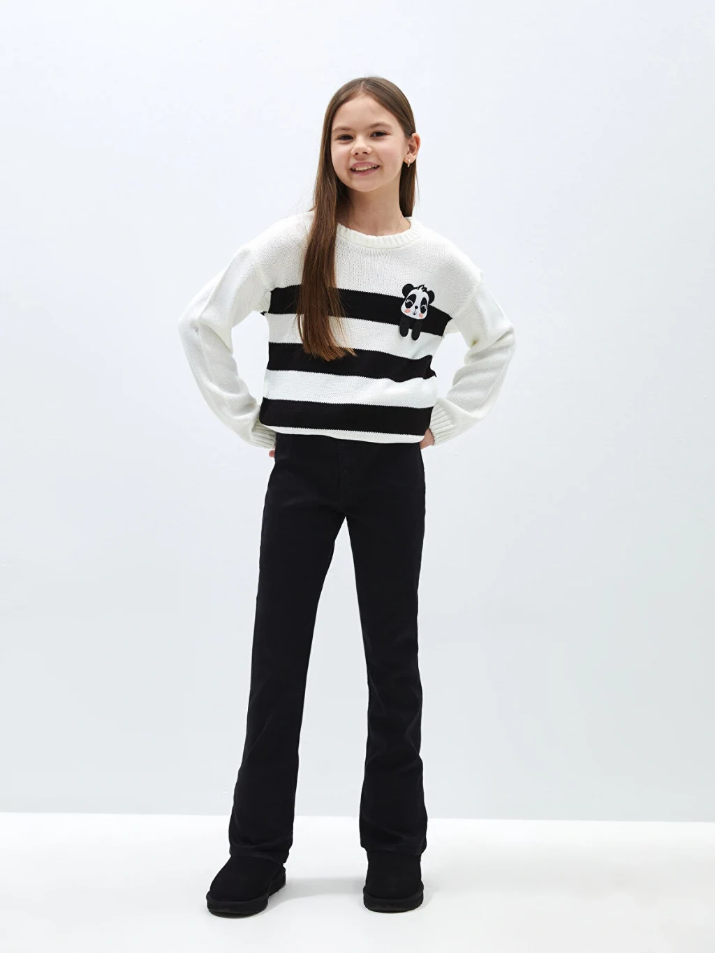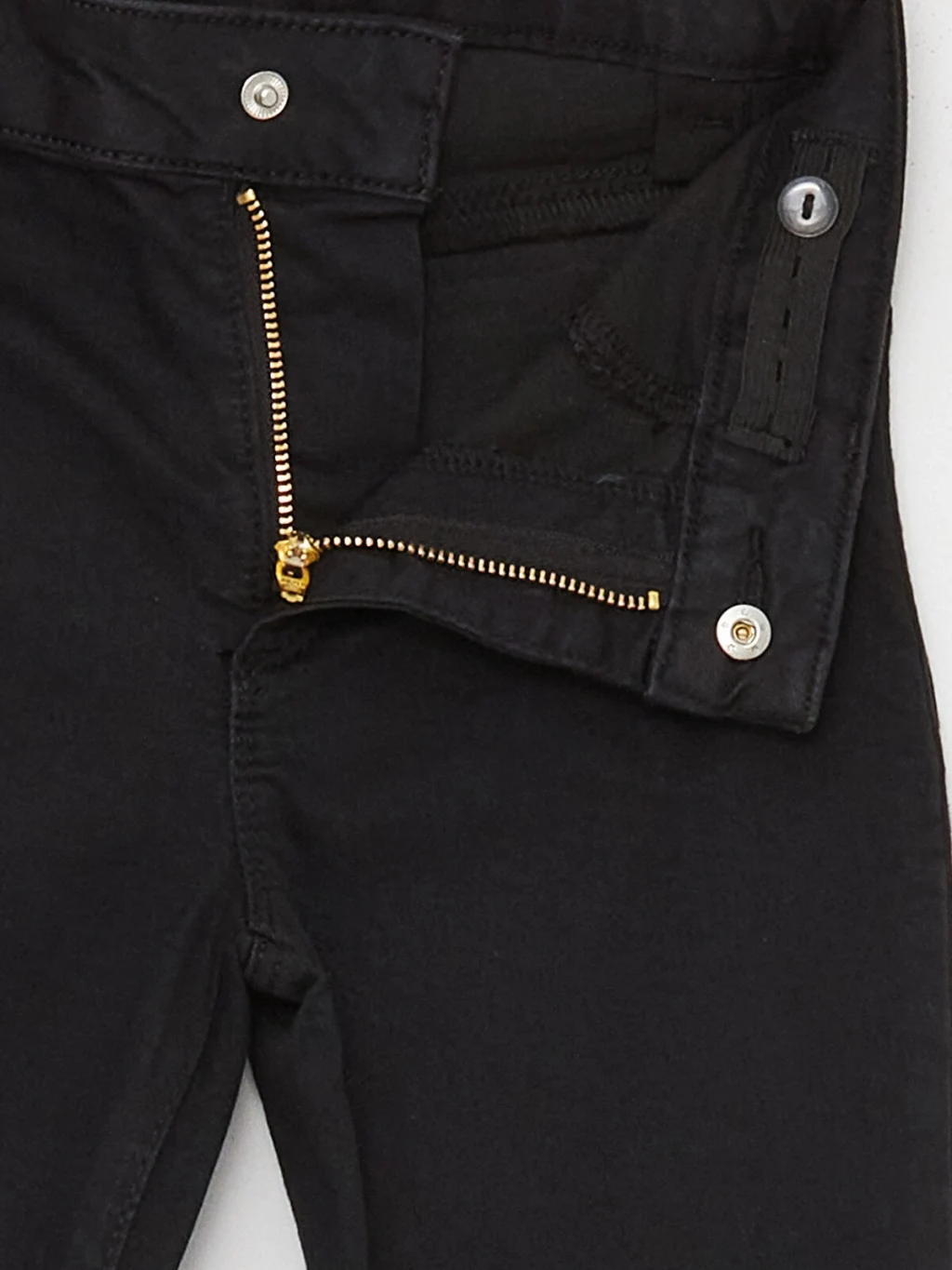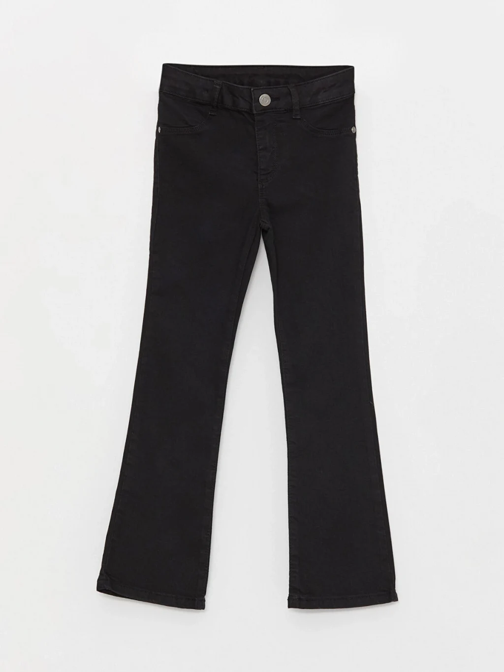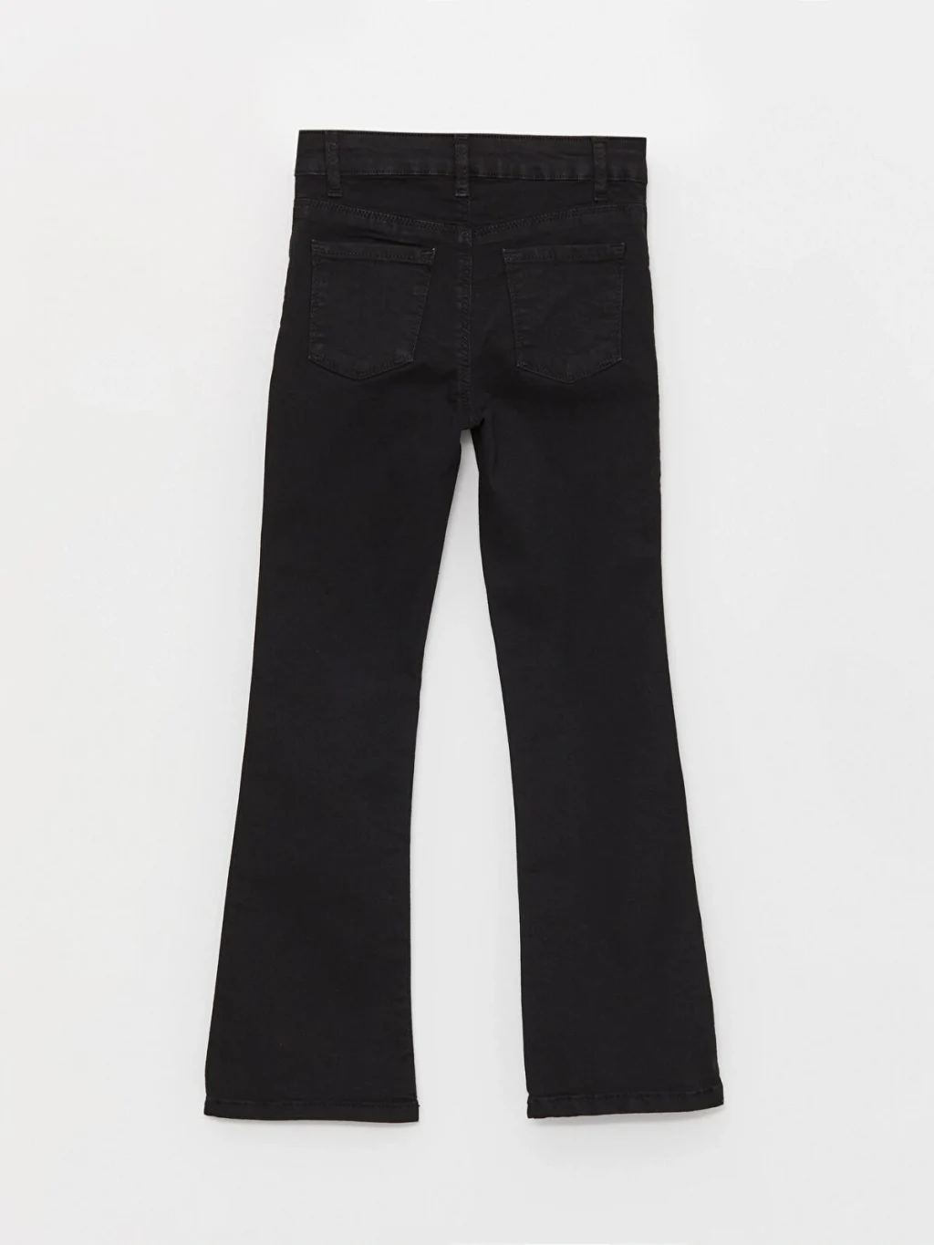 Flare fit jean pantolon, bedene oturan yapısı ve dizden paça ucuna doğru genişleyen rahat bir kesime sahiptir. İspanyol paça görüntüsüyle şık bir görünüm sağlar. İçten lastikli bel detayı ile çocuğunuz büyüdükçe uygun ölçüde kullanım kolaylığı sunar.