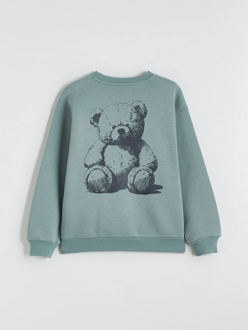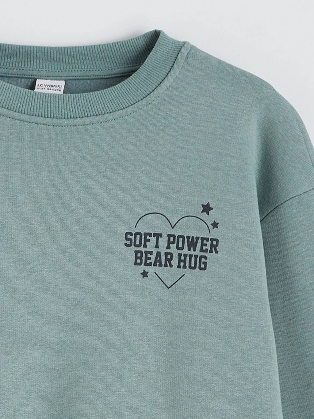 Önü ve arkası baskılı kız çocuk sweatshirt, 3 iplik şardonlu kumaştan üretilmiştir. Manşetleri ve etek ucu ribanalıdır.