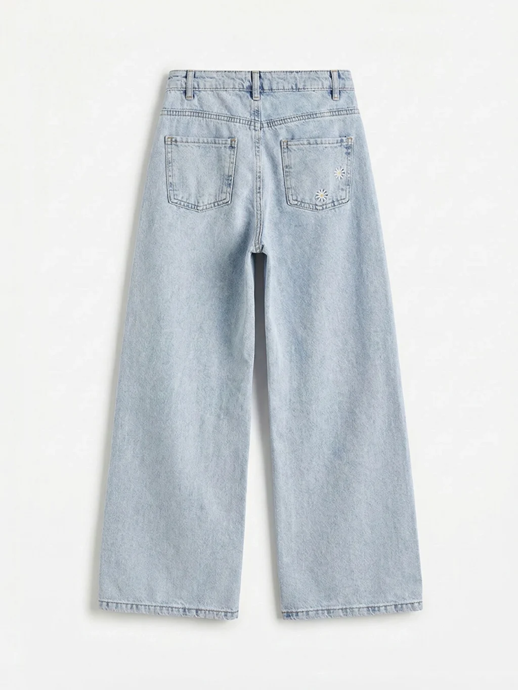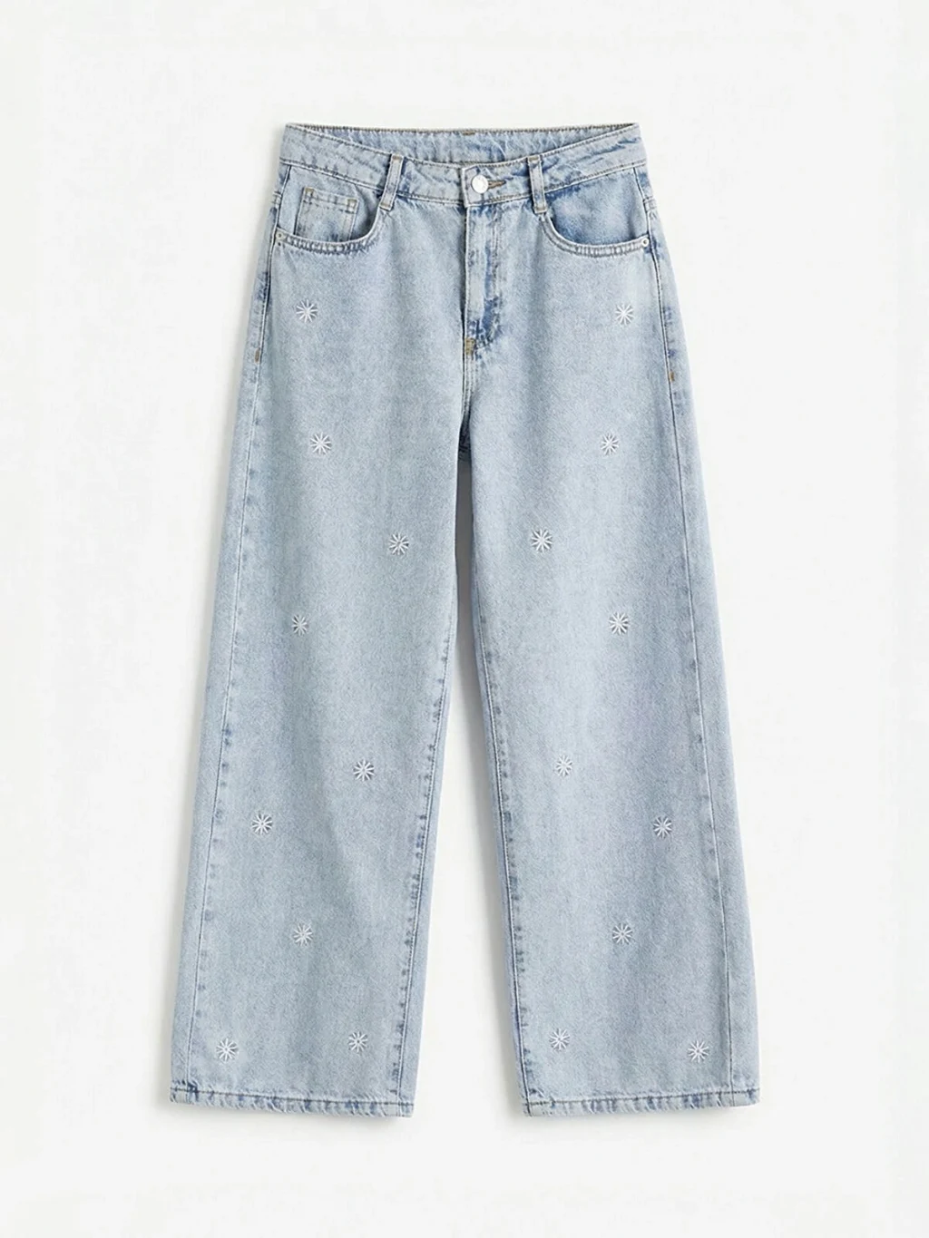 Nakışlı kız çocuk jean pantolon, pamuklu denim kumaştan üretilmiştir. Beş cepli tasarıma sahip olup fermuar ve düğme kapamalıdır.