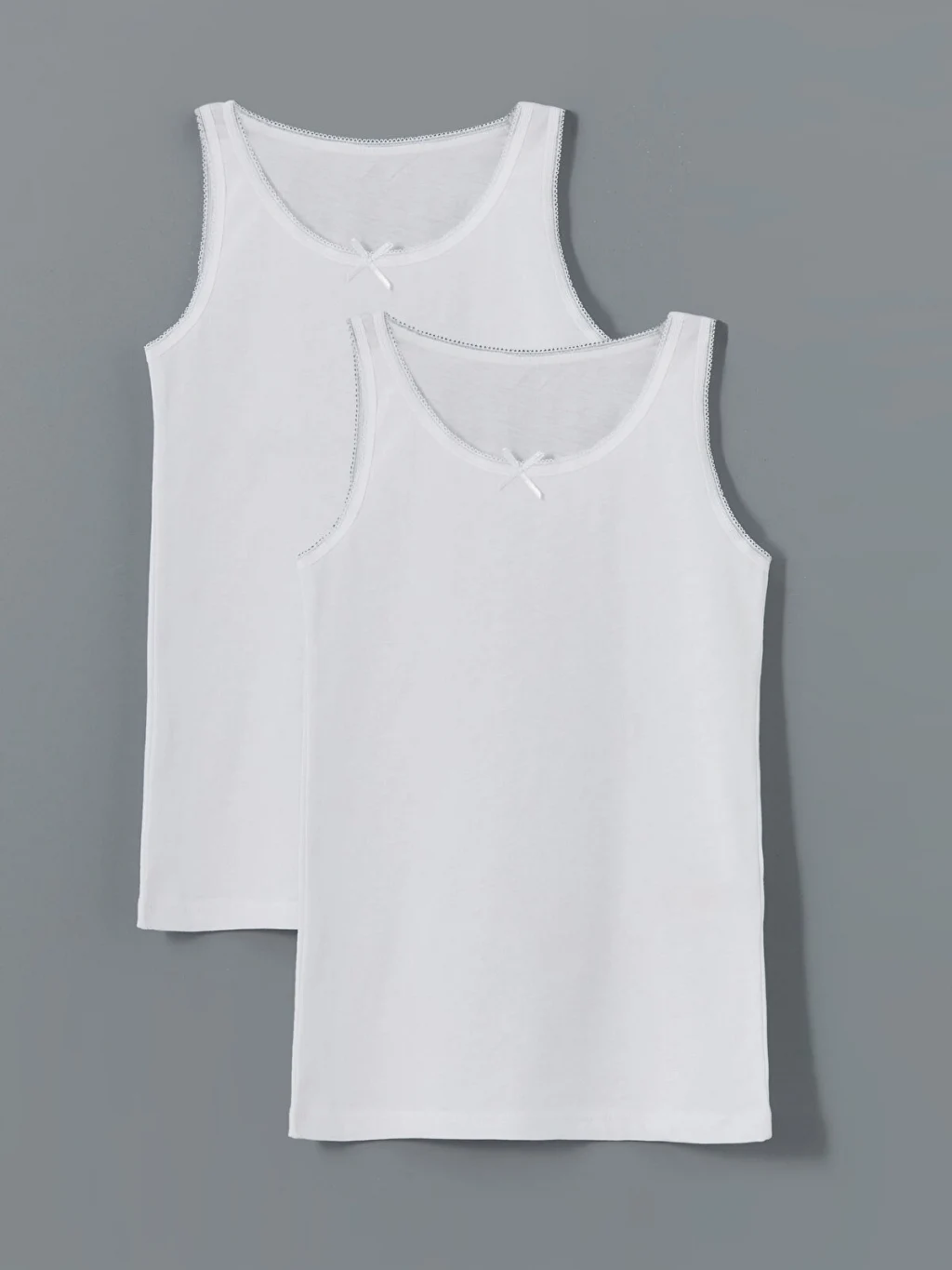 2'li bisiklet yaka kız çocuk atlet, %100 pamuklu penye kumaştan üretilmiştir. Nefes alabilir yapısı sayesinde cildi tahriş etmez ve gün boyu rahatlık sağlar.