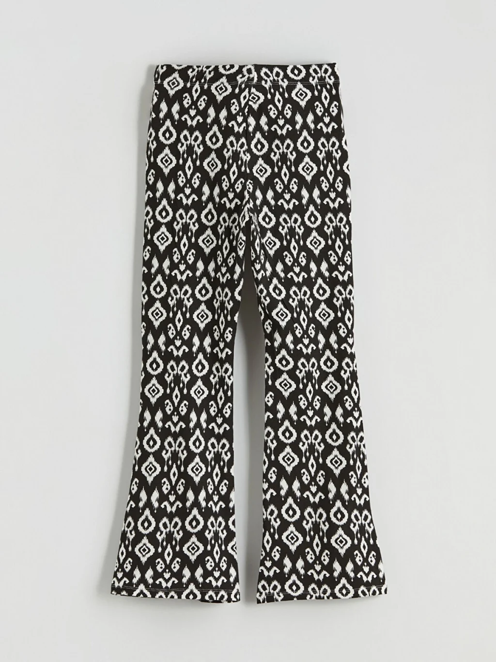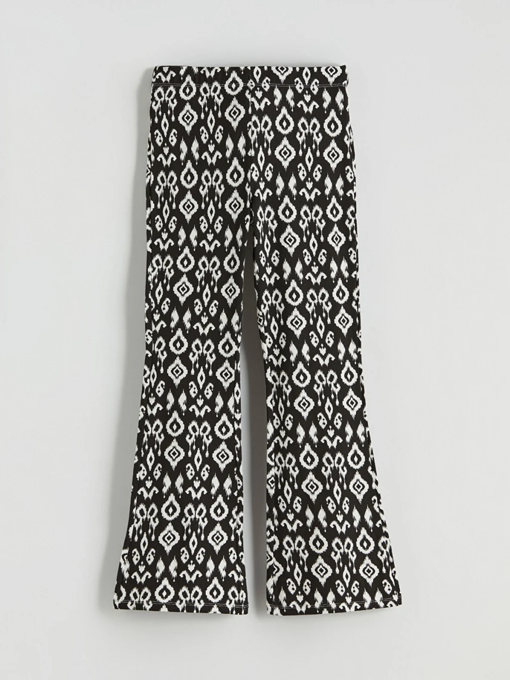 Yüksek pamuk içeren penye kumaştan üretilen kız çocuk tayt, desenli bir tasarıma ve ispanyol paça kesimine sahiptir.