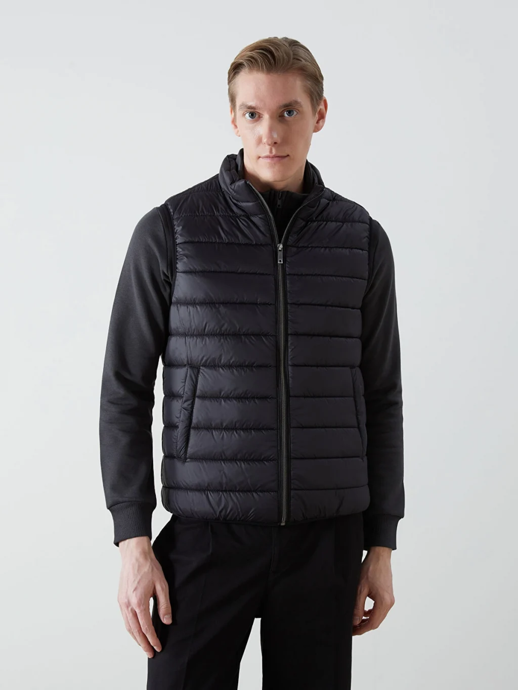 Dik yakalı şişme yelek, soğuk havalarda ekstra koruma sağlar ve rüzgarın etkisini azaltır. Fermuar kapamalı tasarımı sayesinde kolayca giyilip çıkarılabilir ve sıcaklığı kontrol etmenizi sağlar.
