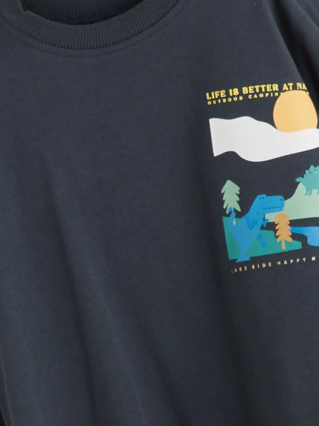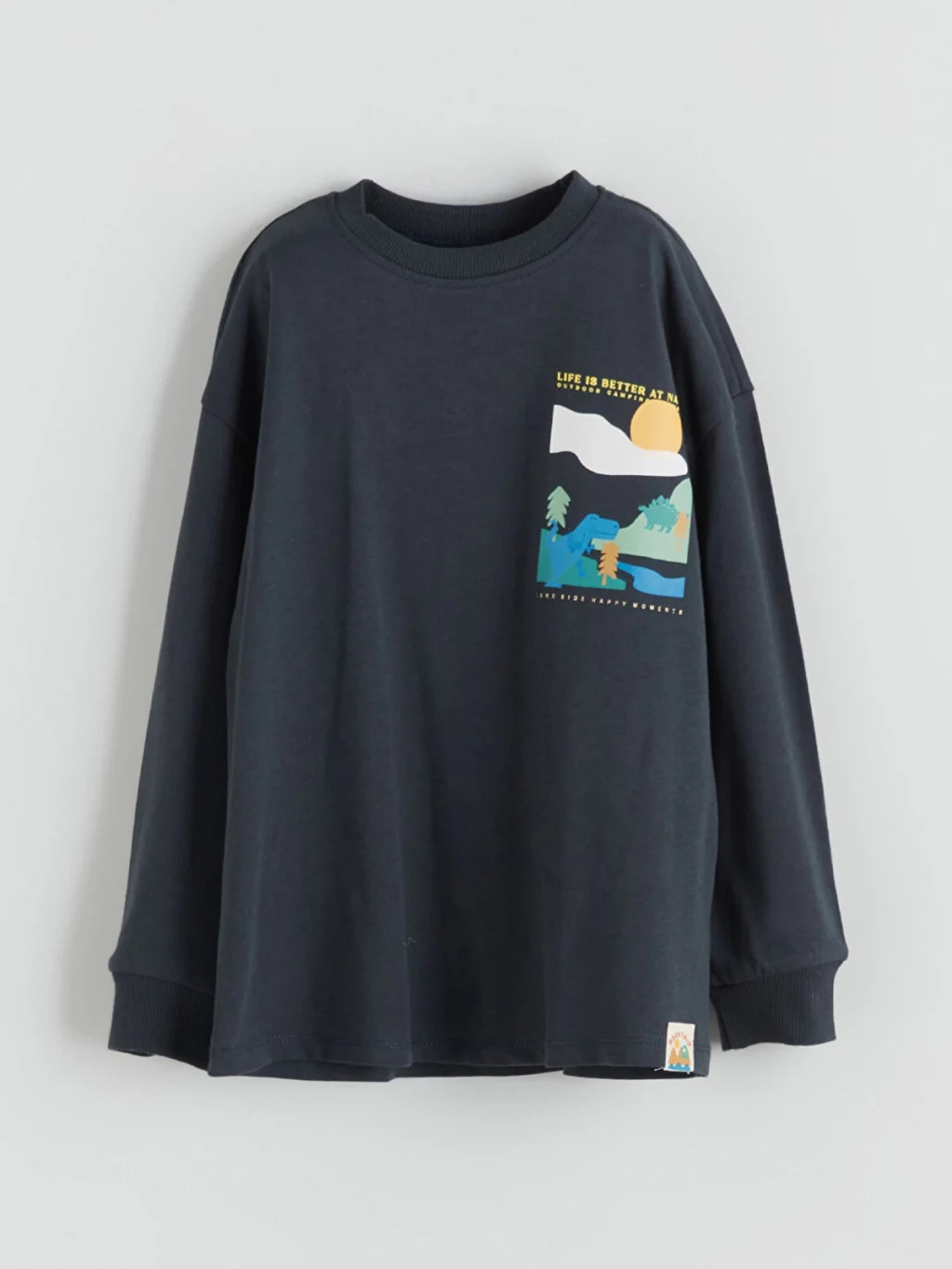 Defacto E9659 Lacivert Erkek Çocuk Oversize Geniş Kalıp V Yaka Baskılı Uzun Kollu Tişört