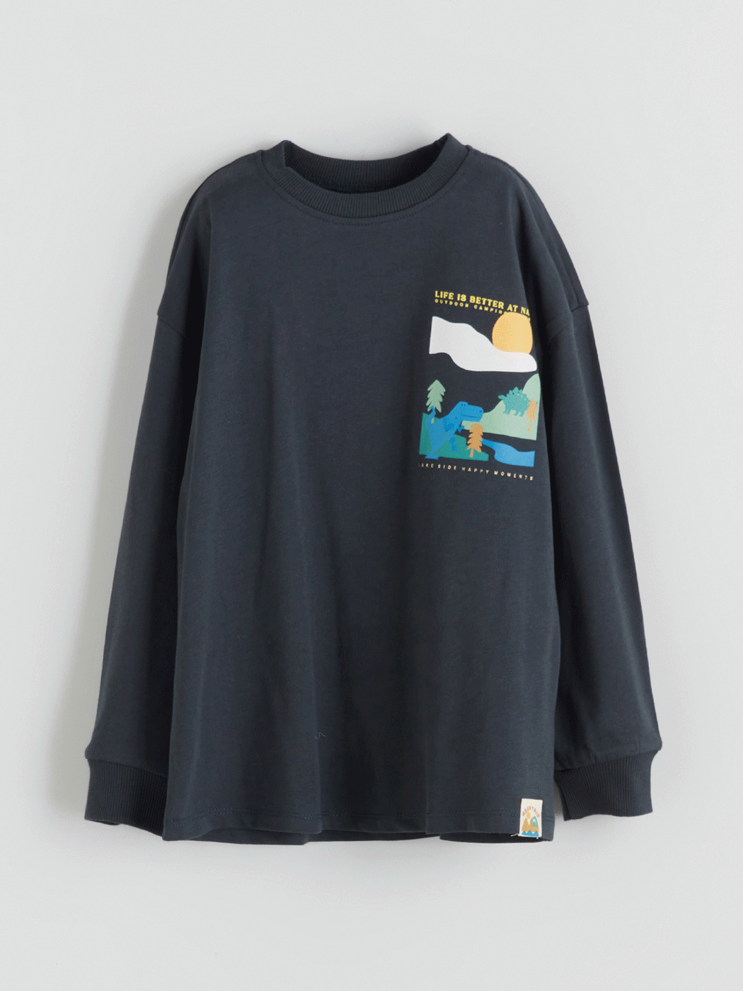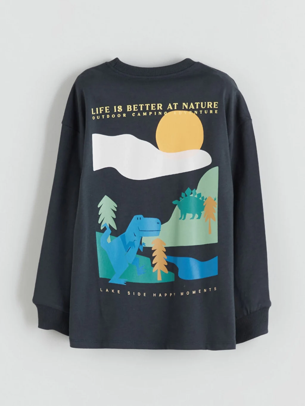 LCW Kids Antrasit Bisiklet Yaka Baskılı Uzun Kollu Erkek Çocuk Tişört