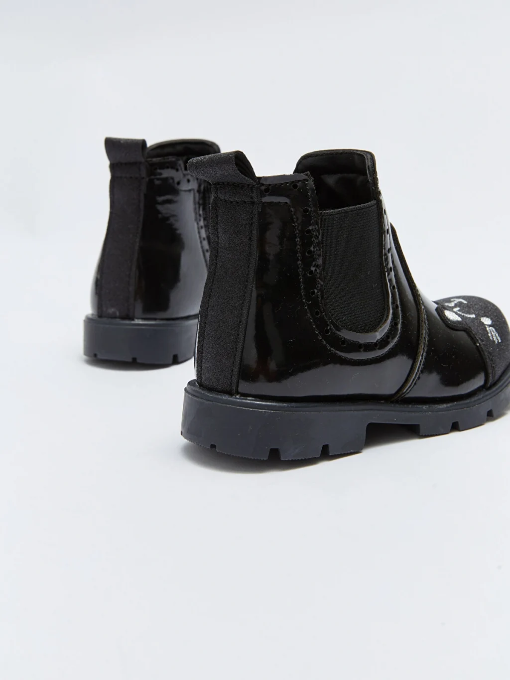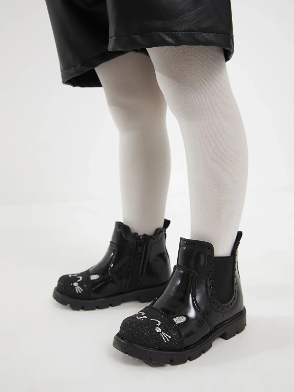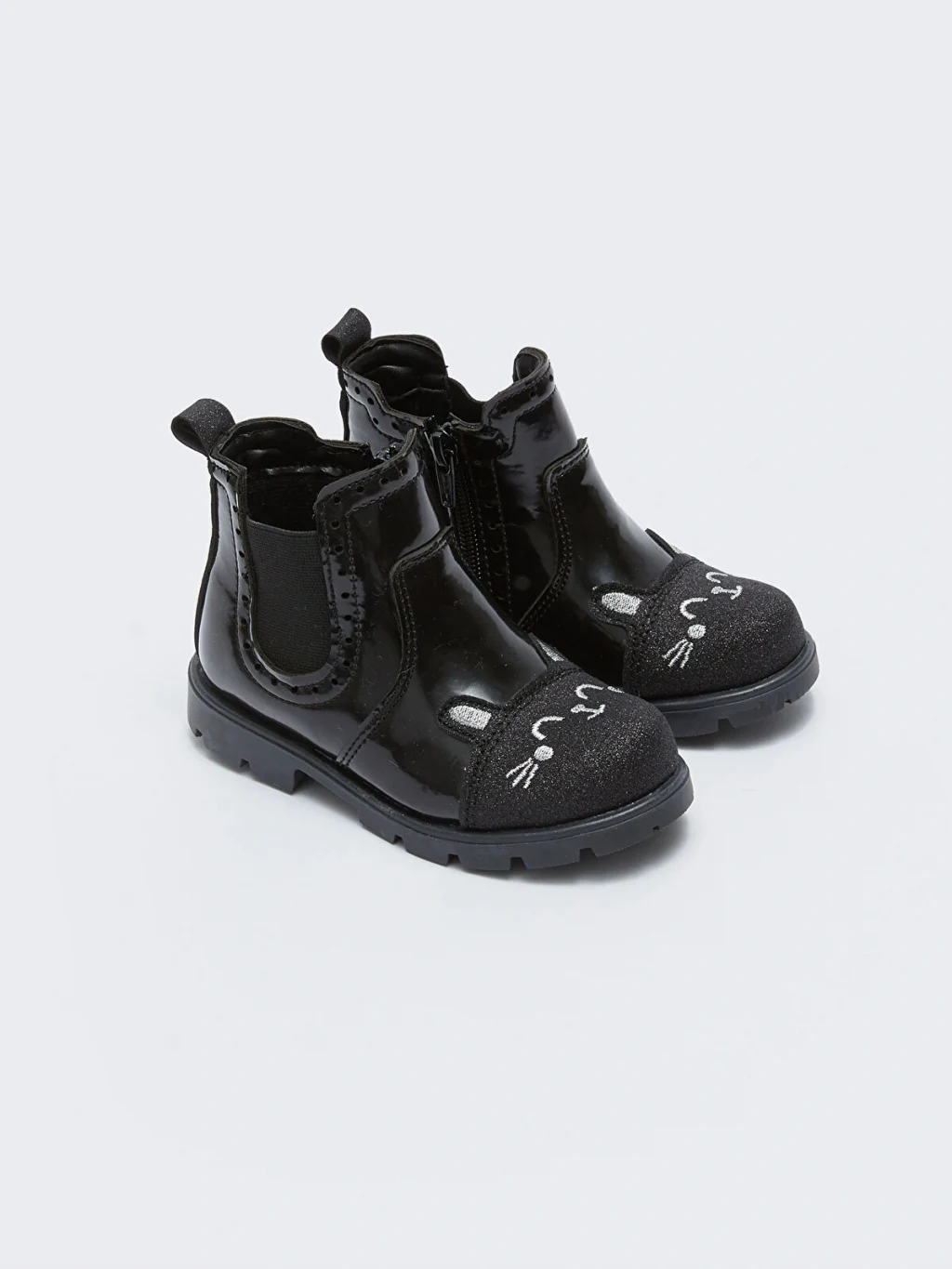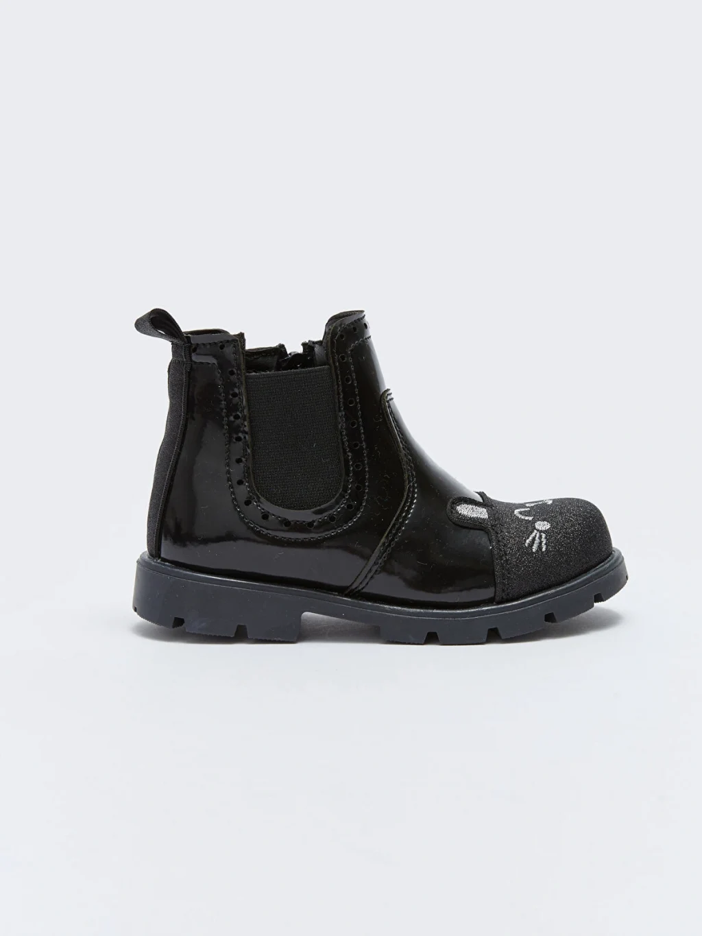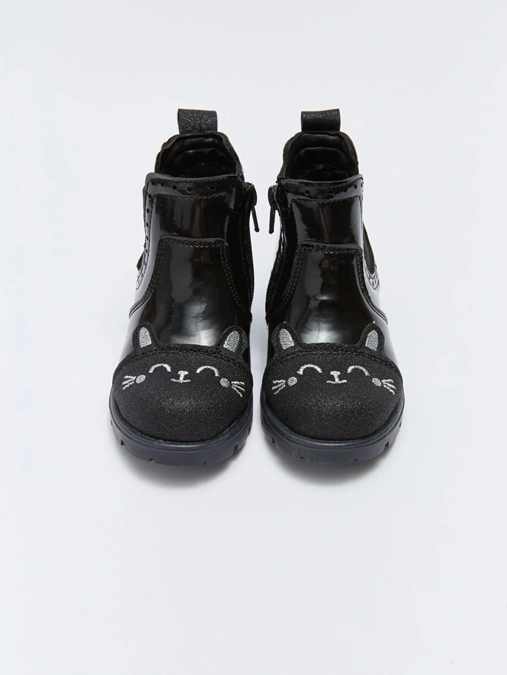 LCW STEPS Siyah Nakışlı Fermuar Kapamalı Kız Bebek Bot