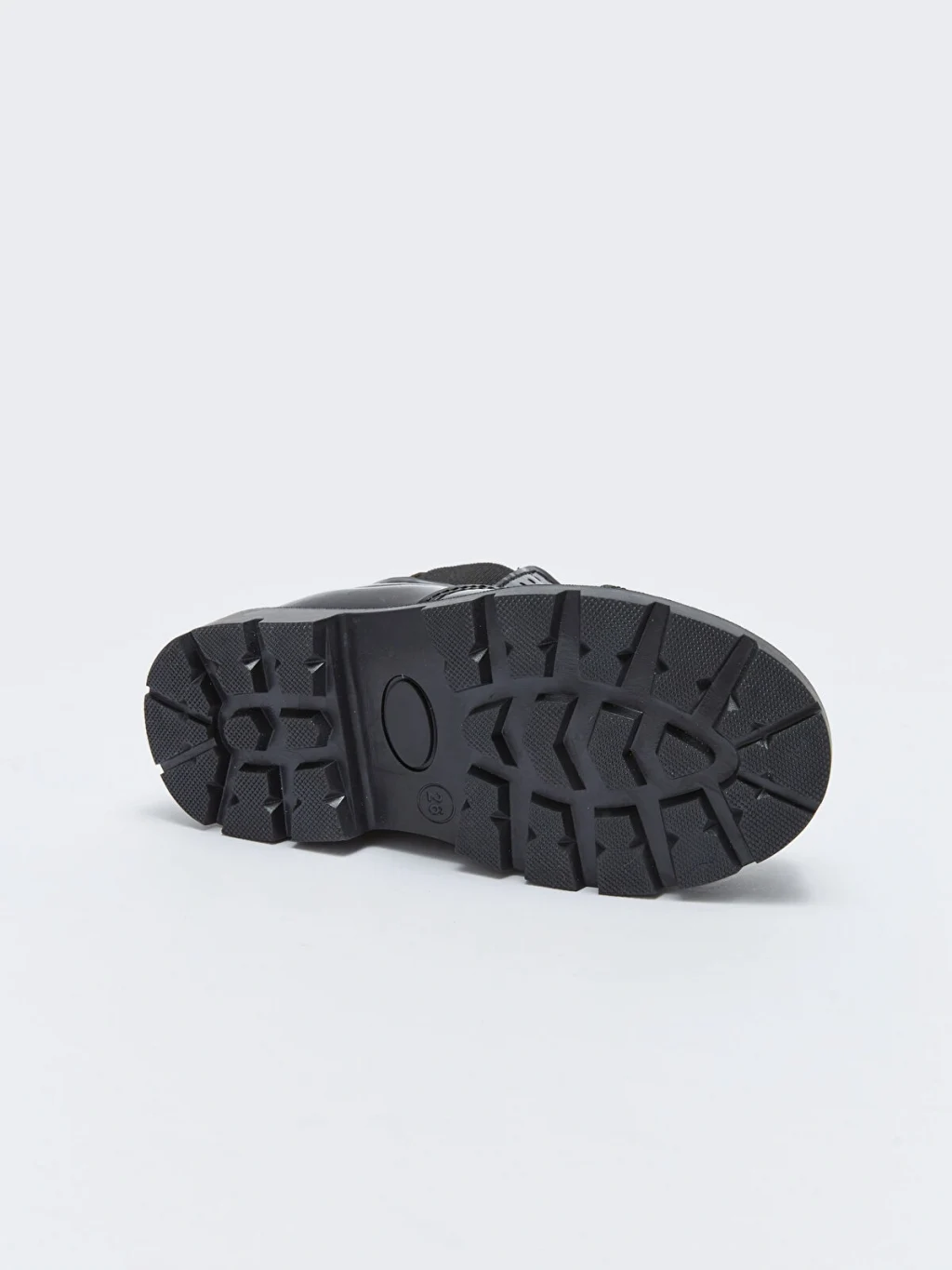 LCW STEPS Siyah Deri Görünümlü Cırt Cırtlı Erkek Bebek Bot