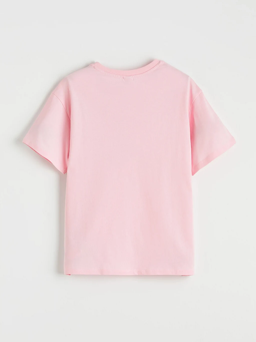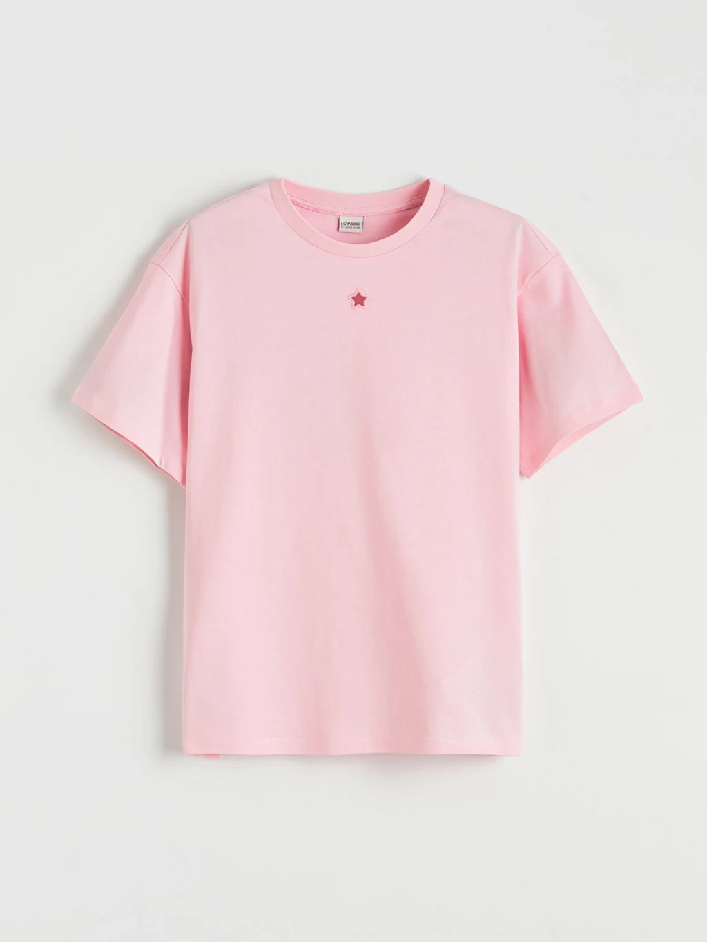 Bol kalıplı kız çocuk tişört, pamuklu penye kumaştan üretilmiştir. Bisiklet yakalı, kısa kollu ve göğüs kısmında nakış detayı bulunur.