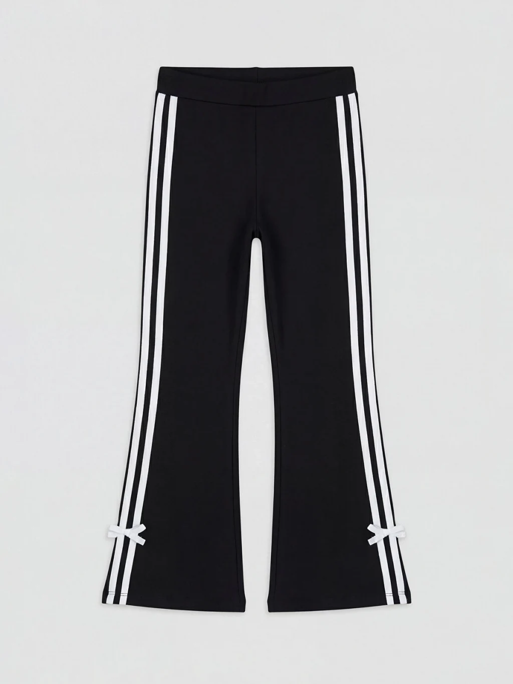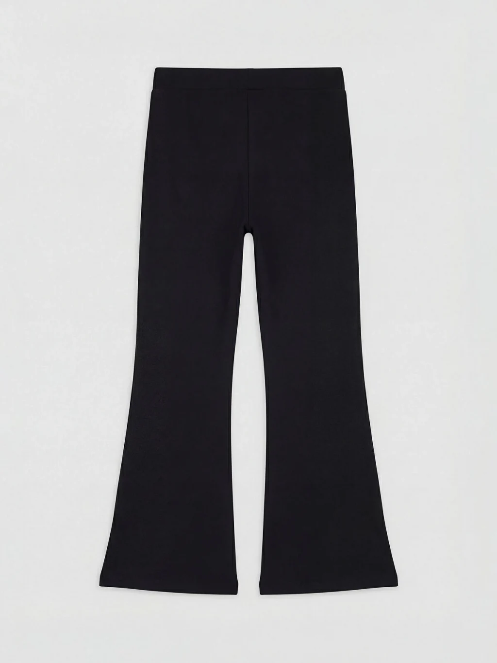 Yüksek pamuk içerikli 2 iplik kumaştan üretilen kız çocuk tayt, beli lastikli, ispanyol paça kesimli ve yanları şeritlidir.