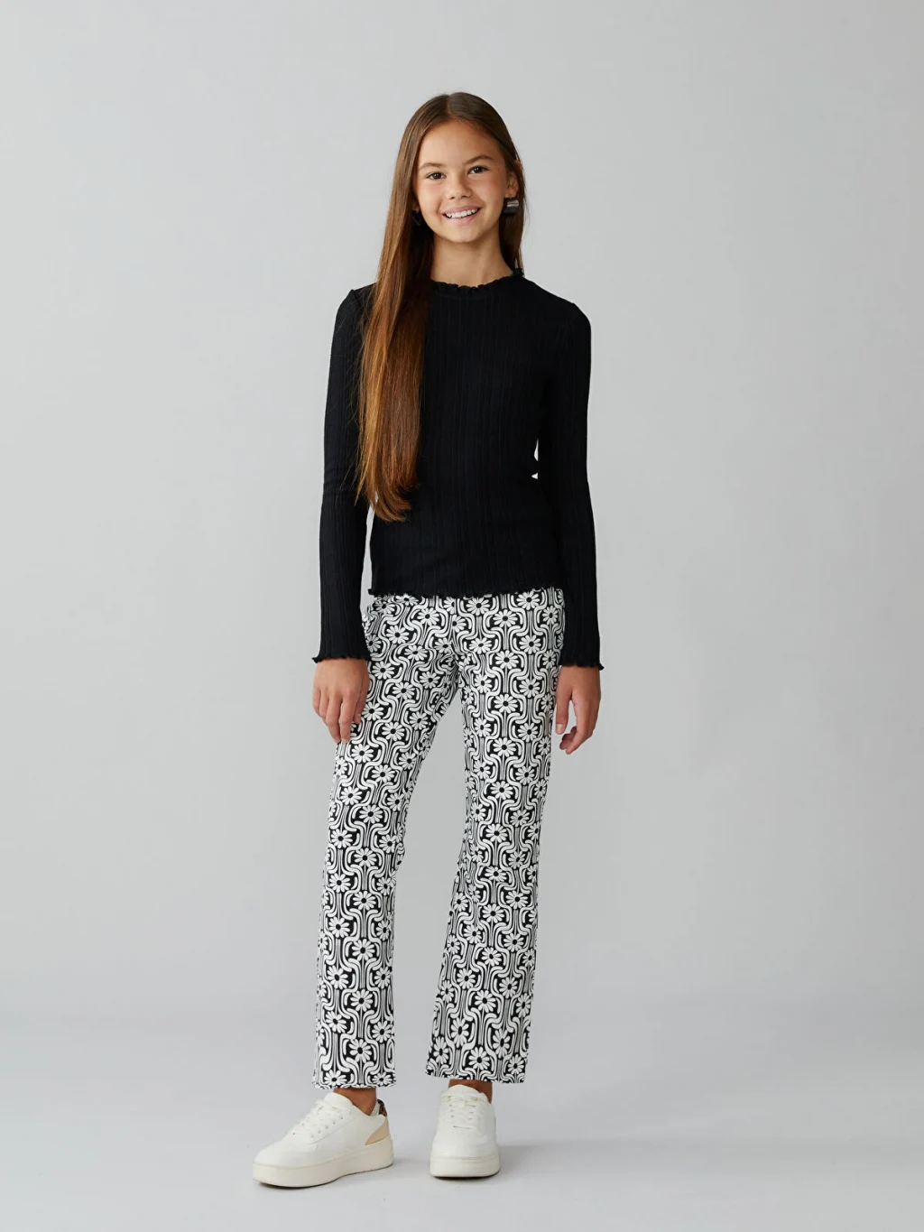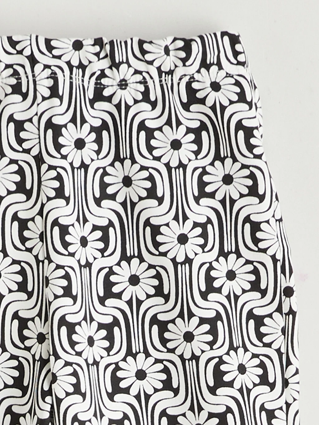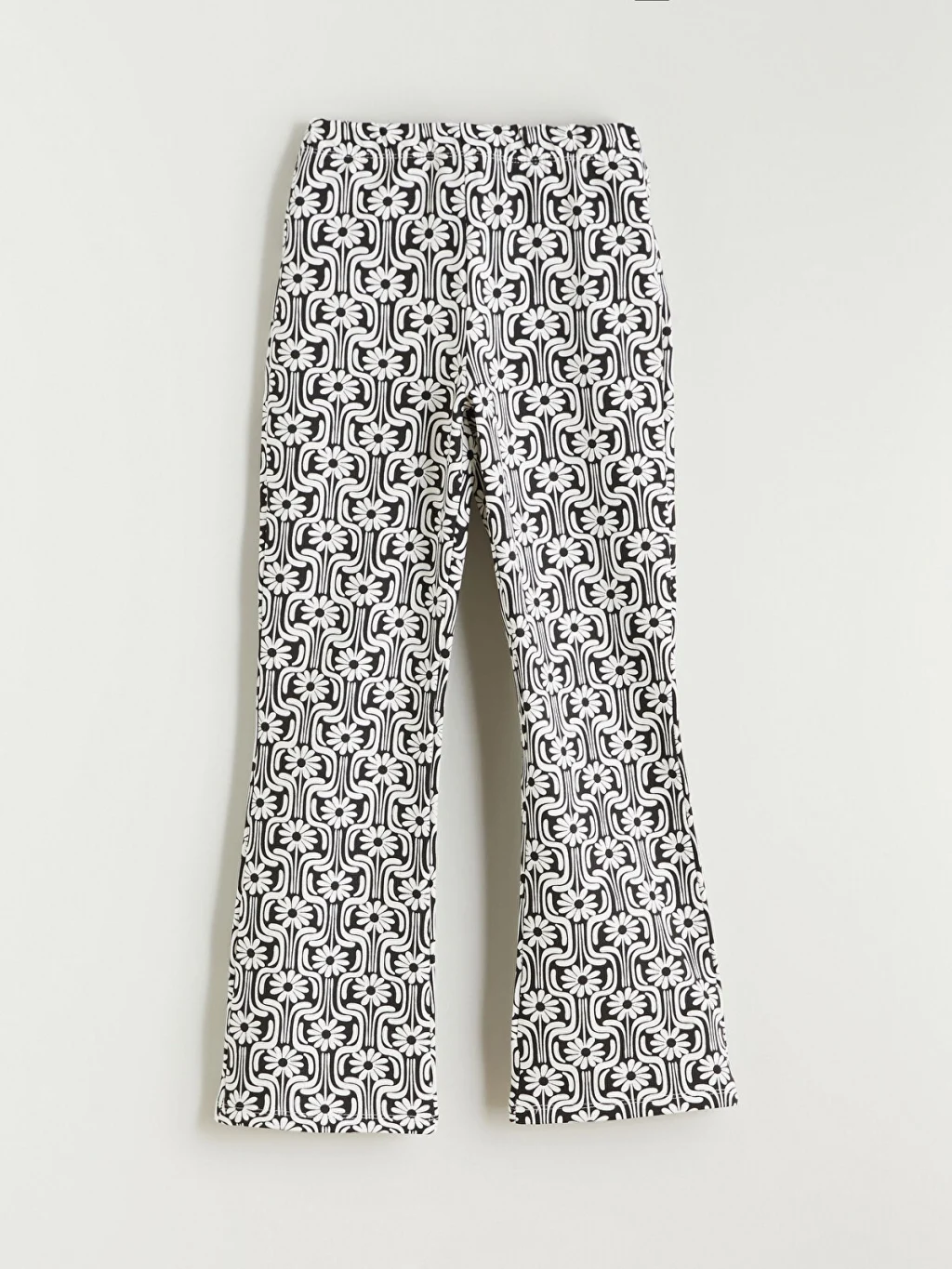 Beli lastikli, desenli kız çocuk tayt, yüksek pamuk içerikli 2 iplik kumaştan üretilmiştir. İspanyol paça kesimlidir.
