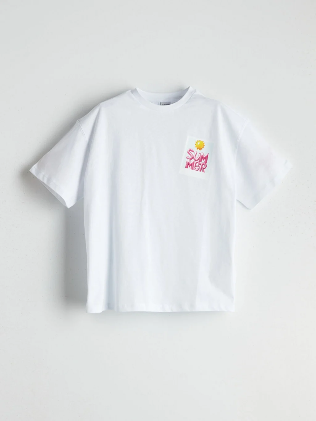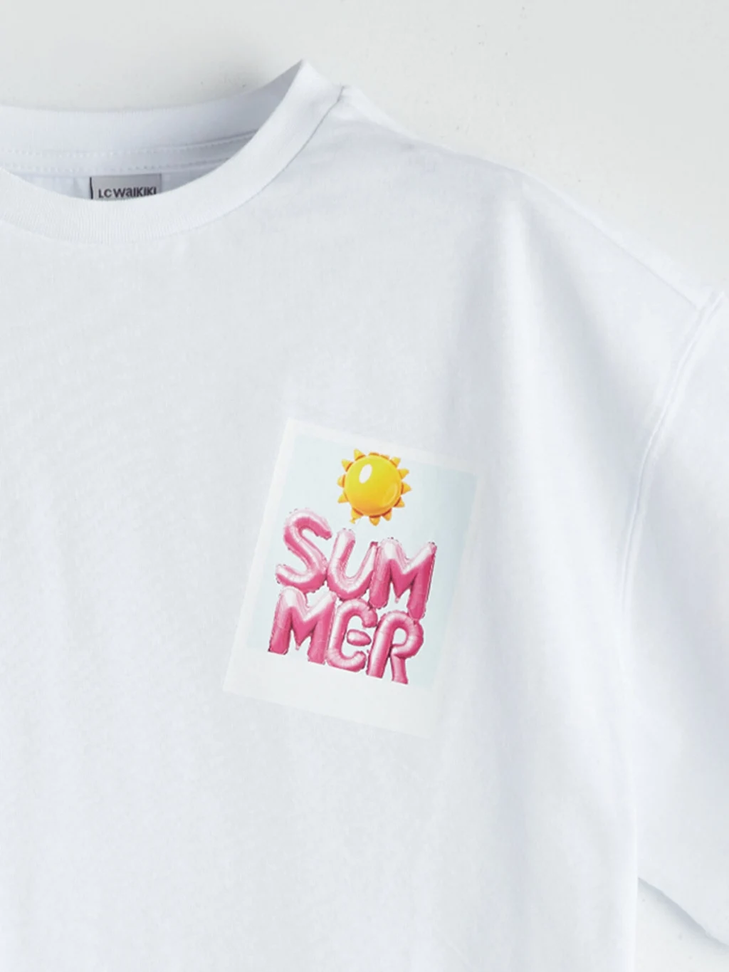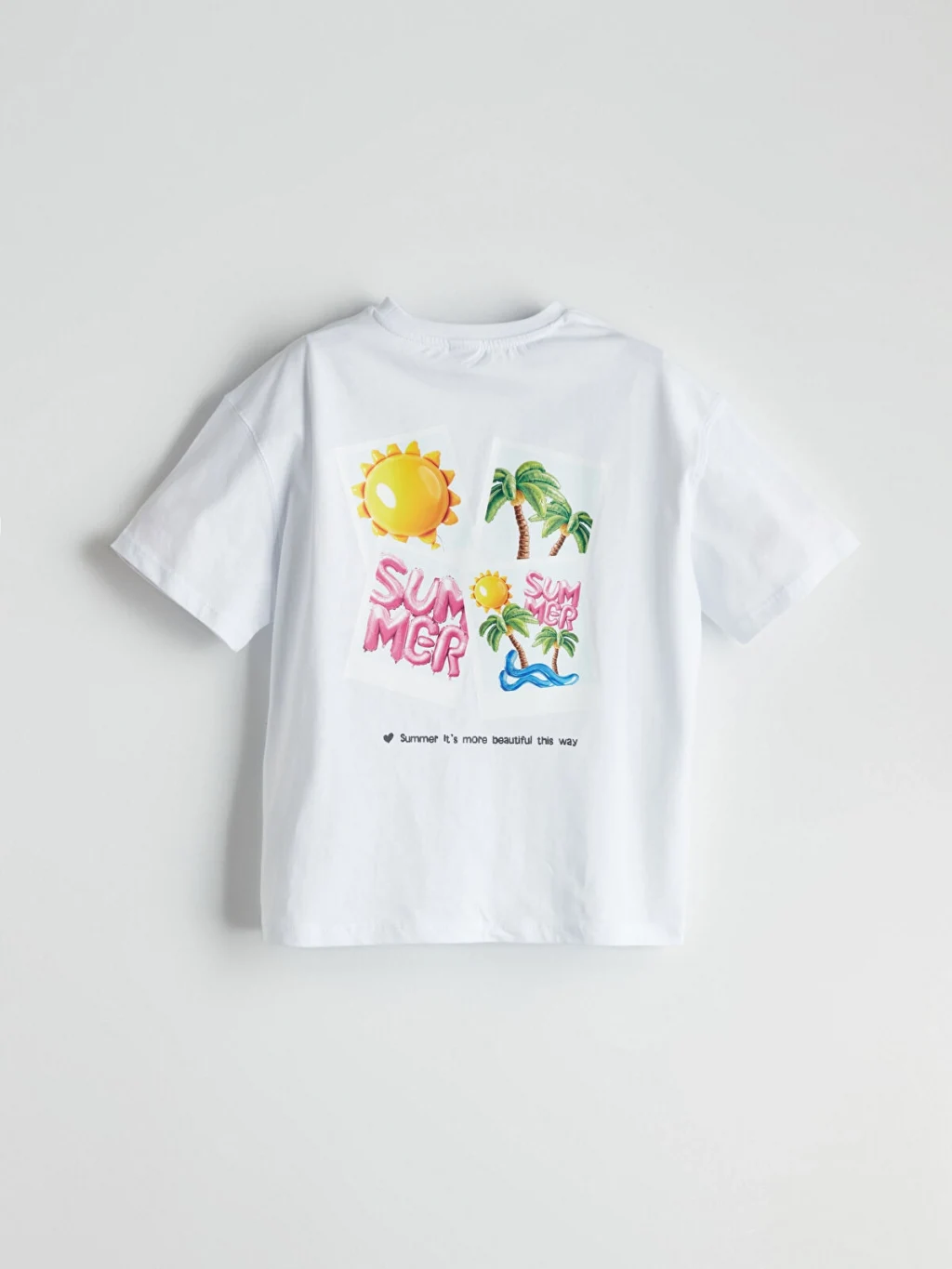 Kız çocuk tişört, bisiklet yaka ve kısa kolludur. %100 pamuklu penye kumaştan üretilmiştir. Bol kalıplı ve sırtı baskılıdır.