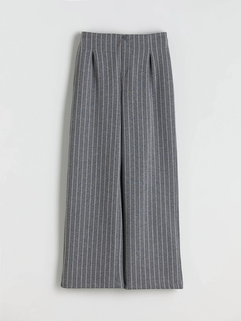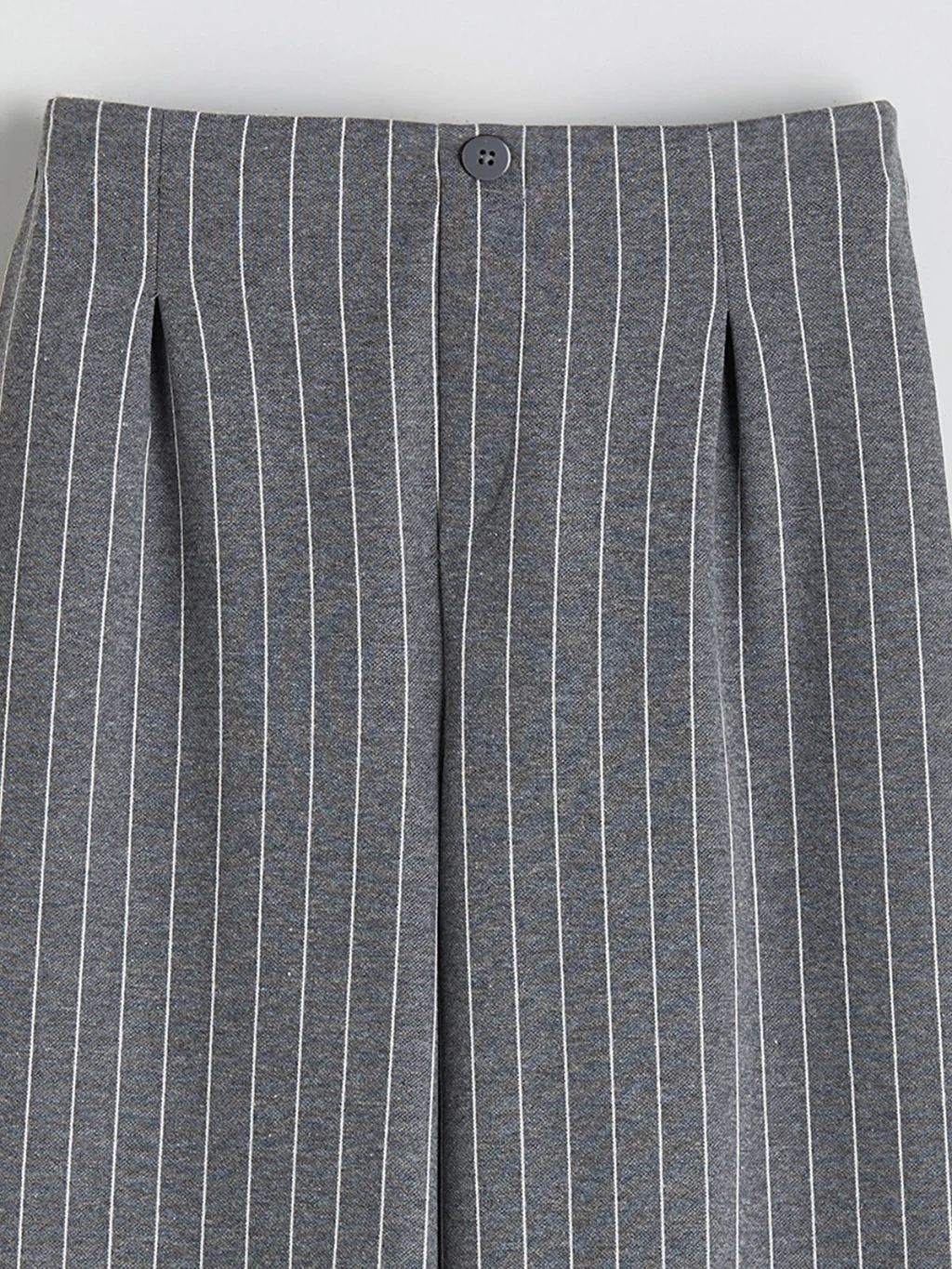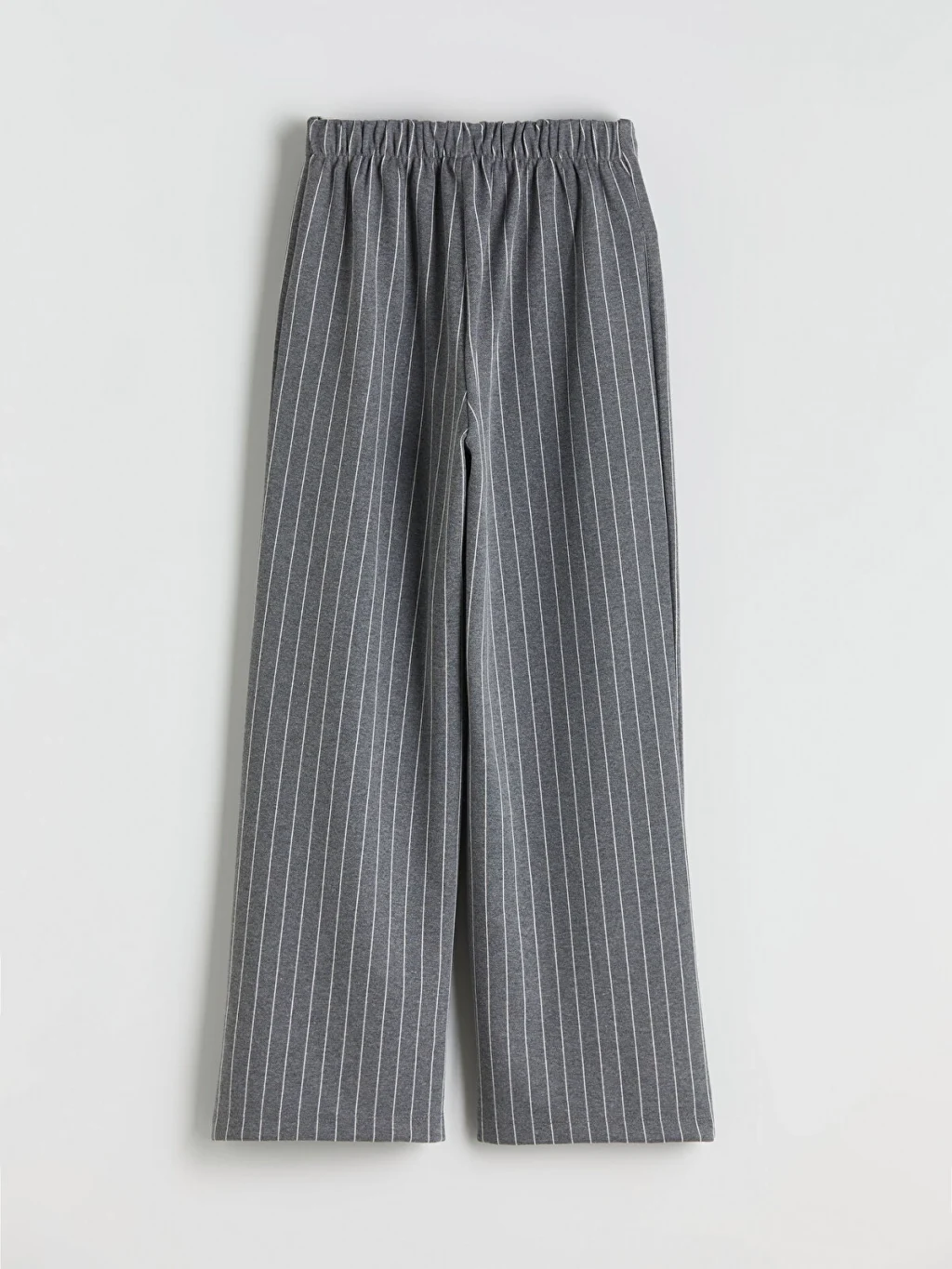 Jakar kumaştan üretilen, çizgili desenli kız çocuk eşofman altı, önü pileli ve geniş paçalıdır. Düğme kapamalıdır.