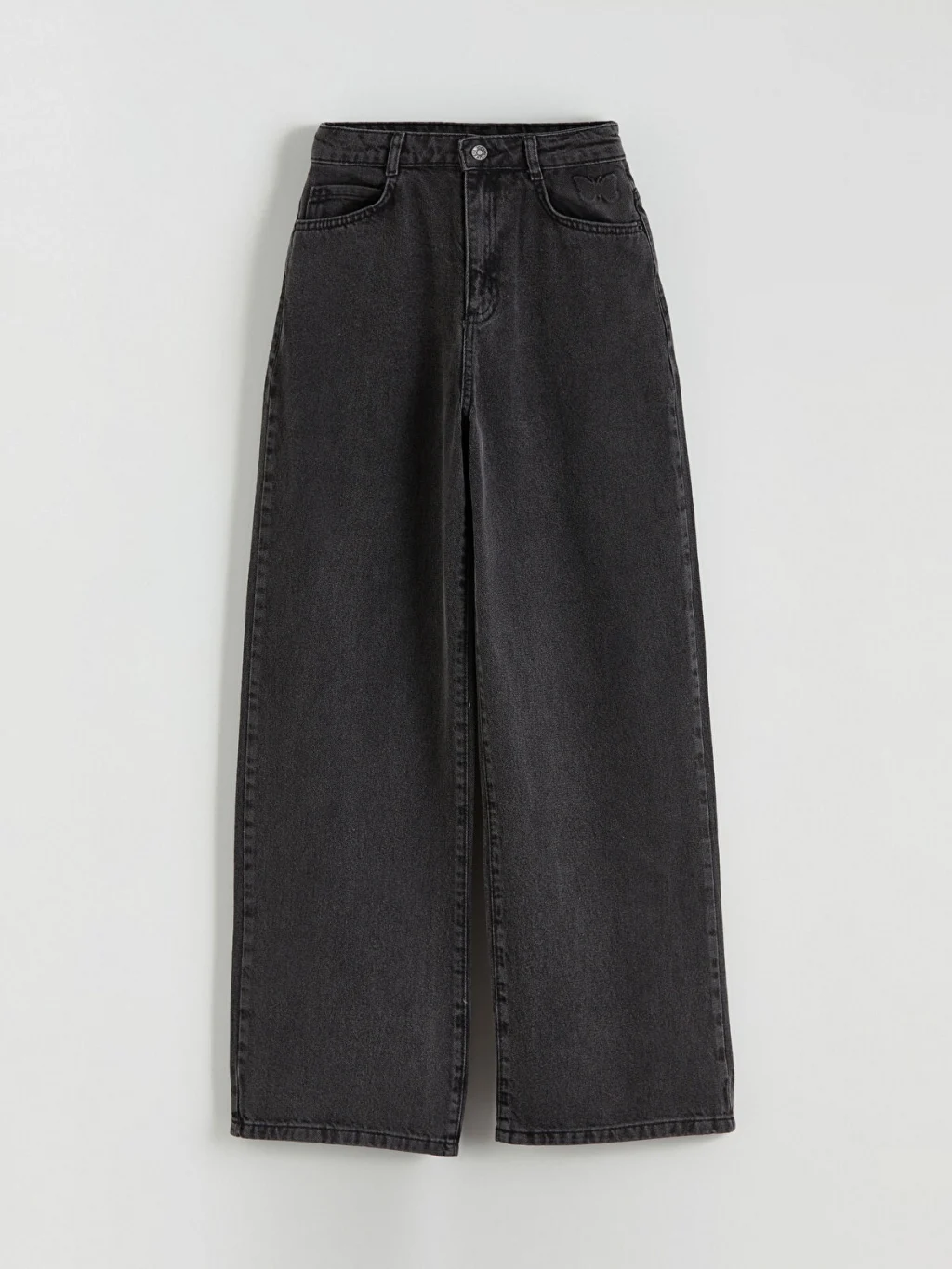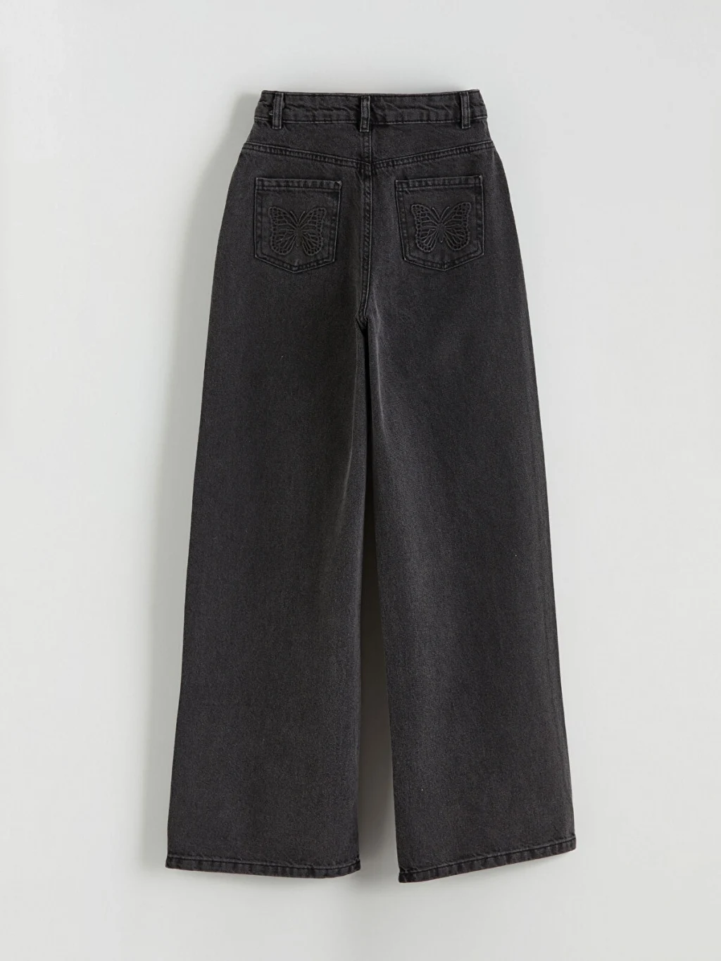 Boyfriend kalıpta tasarlanan kız çocuk jean pantolon, bol kesime sahiptir. Yumuşak dokulu denim kumaştan üretilmiş olup ceplerinde kelebek nakış detayı bulunur.