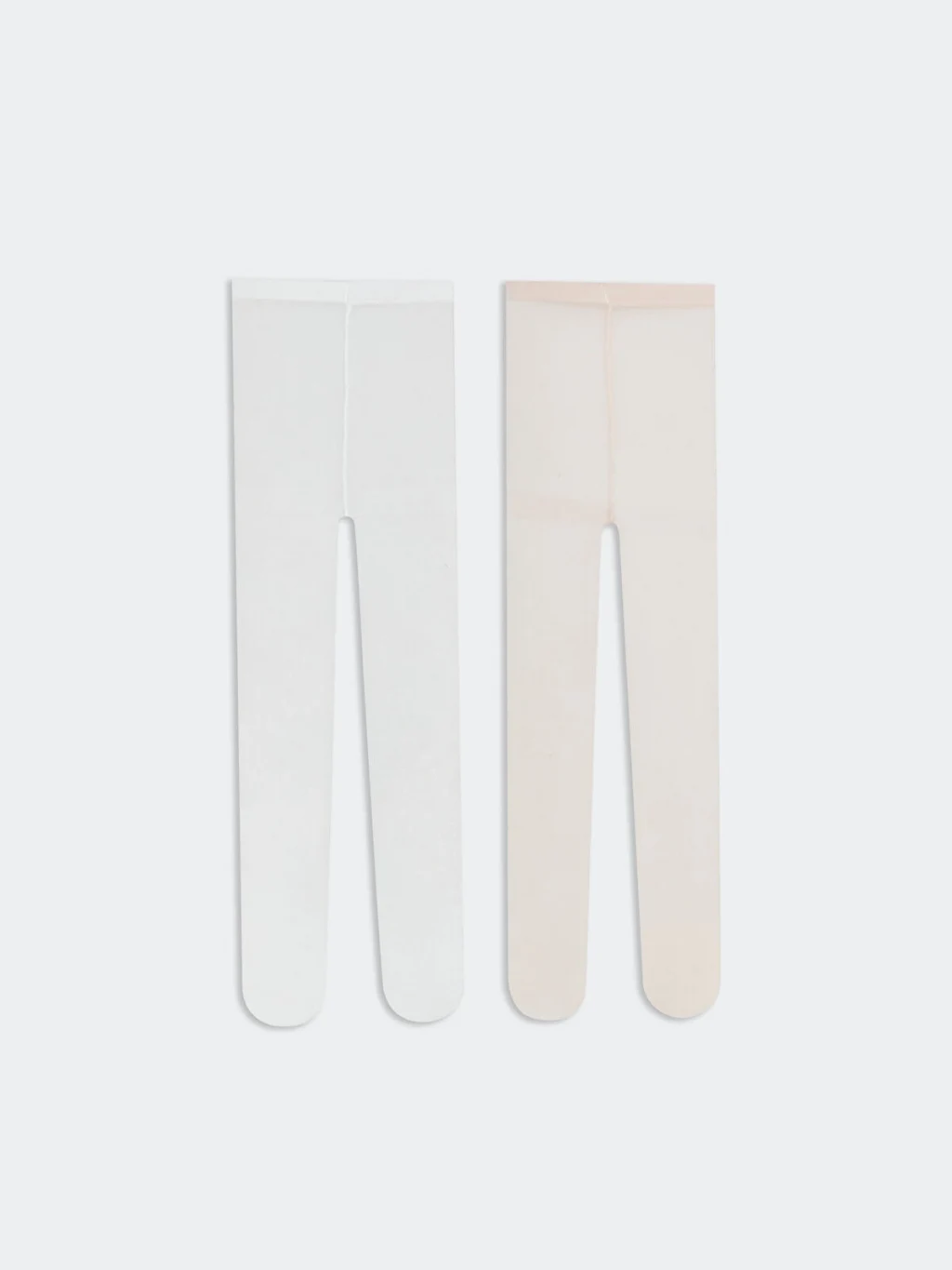 Kız bebek için tasarlanmış, elastik bel bantlı ve desensiz külotlu çorap, ikili paket halinde sunulmaktadır.
