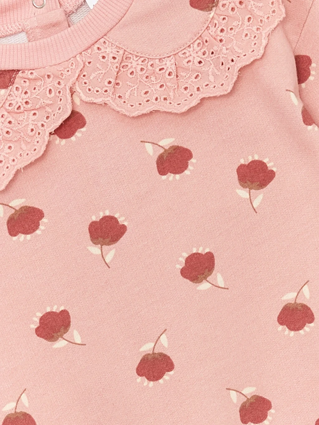 Bebe yaka kız bebek sweatshirt ve tayt 2'li takım, üstün 3 iplik kumaşıyla sıcaklık ve şıklık sunar. Bebeğinizin rahatlığını ön planda tutan bu takım, soğuk havalarda dahi stilini korur.