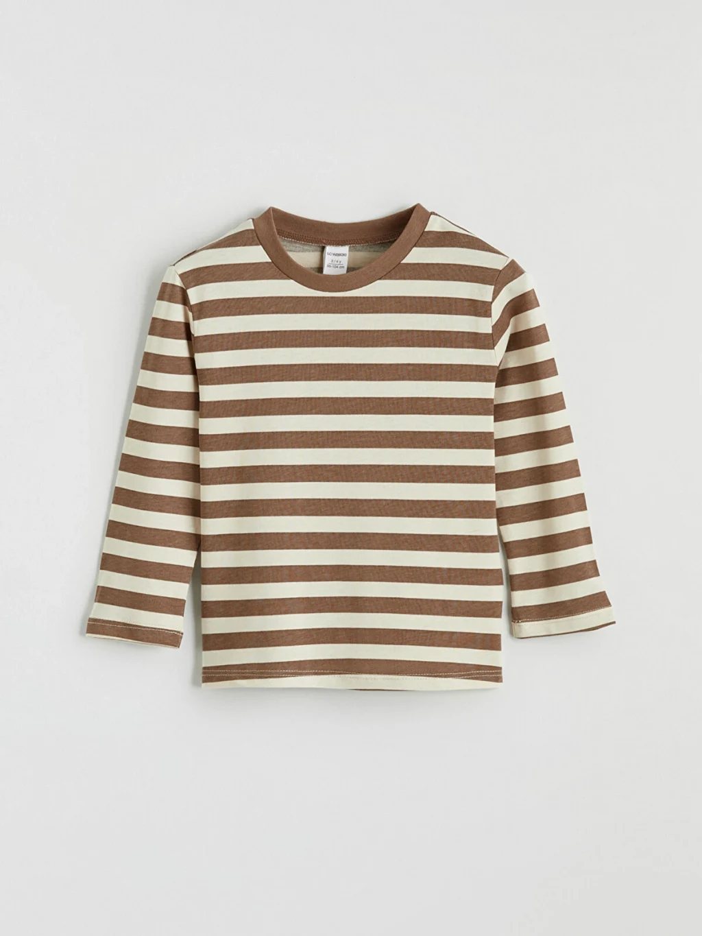 Erkek bebek tişört uzun kollu, bisiklet yakalı tasarıma sahiptir. Pamuklu malzemeden üretilmiştir.