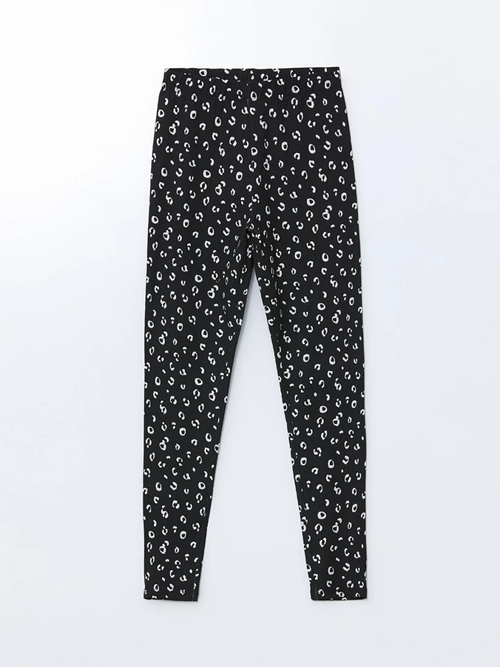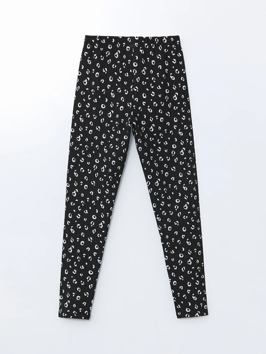 Beli lastikli ve tümü desenli kız çocuk tayt, yüksek pamuk içerikli penye kumaştan üretilmiştir.