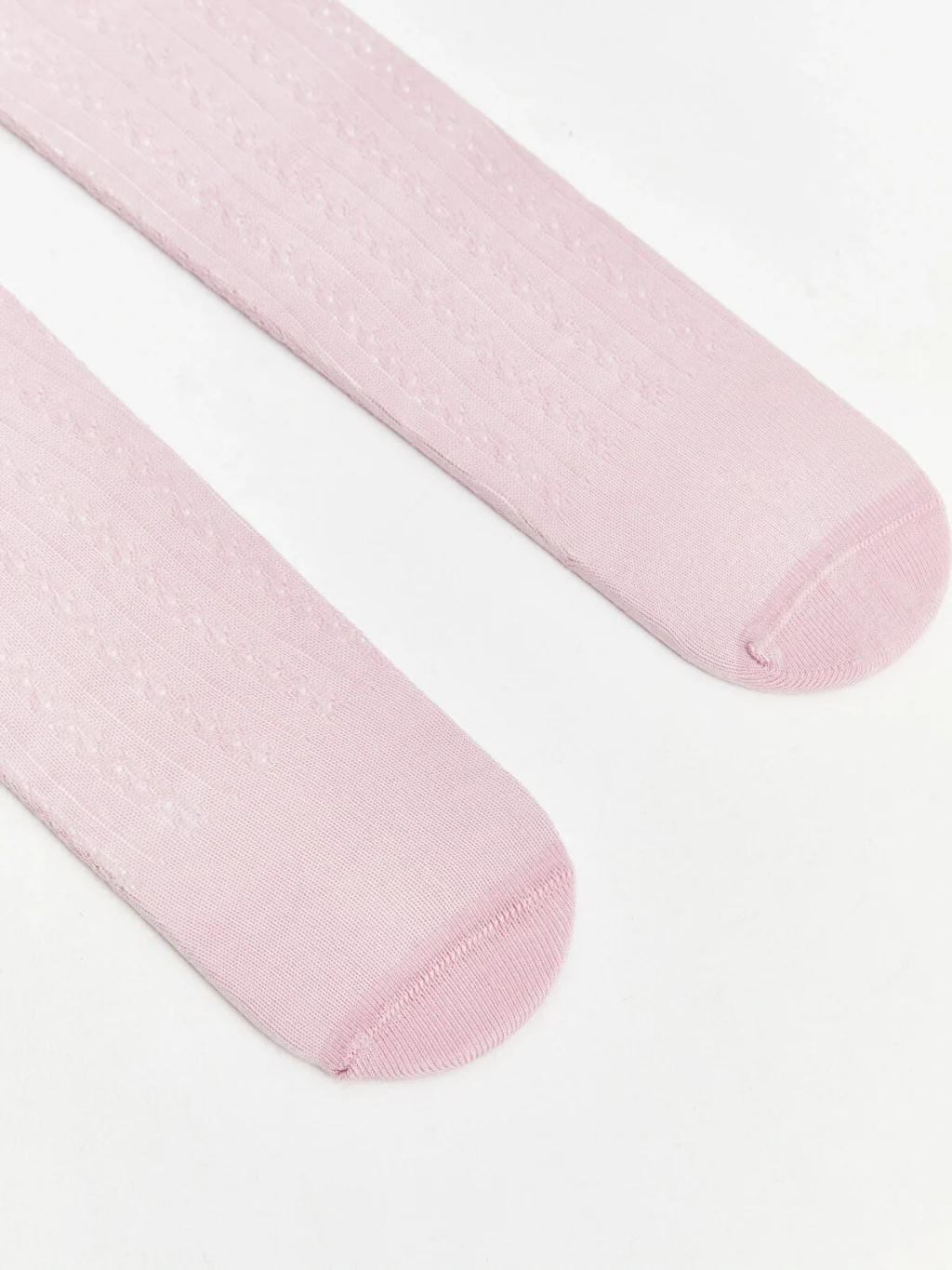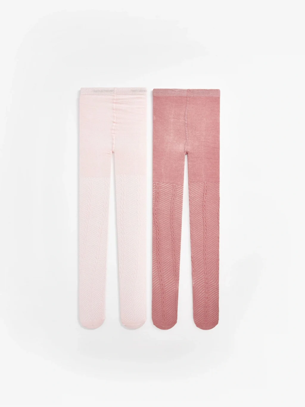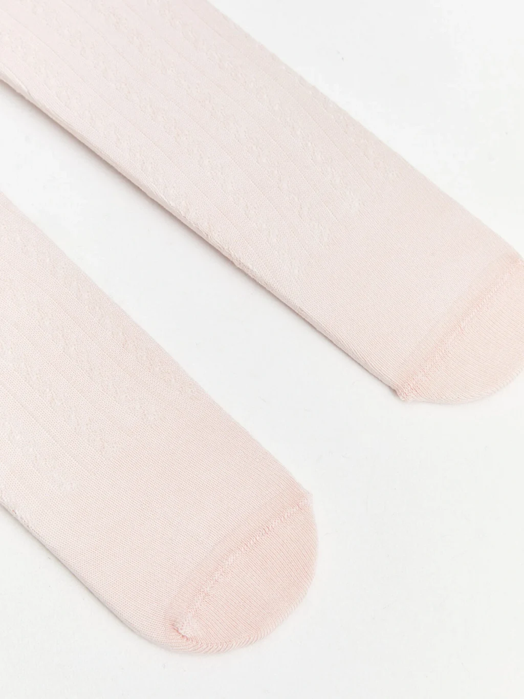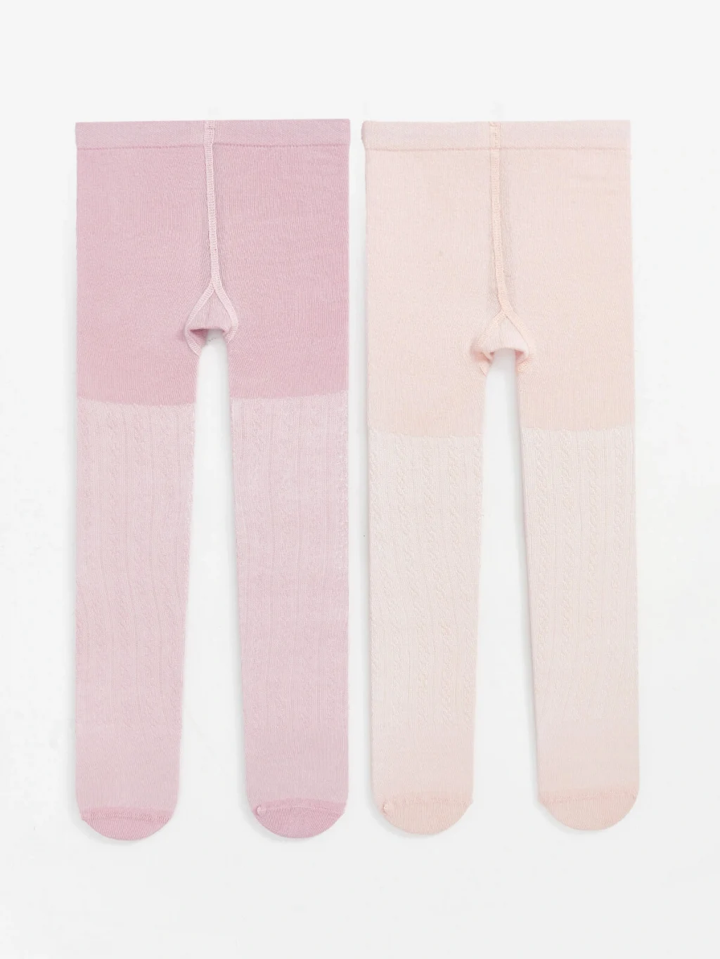 Kız bebek 2'li külotlu çorap seti, beli lastikli ve bacak boyu kabartma desenlidir.