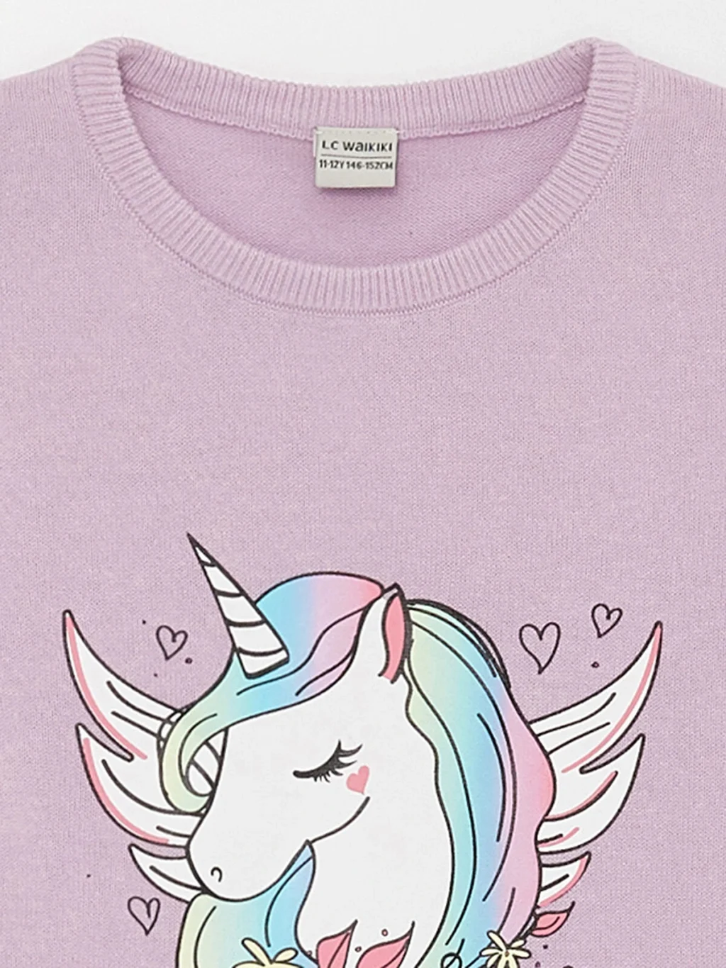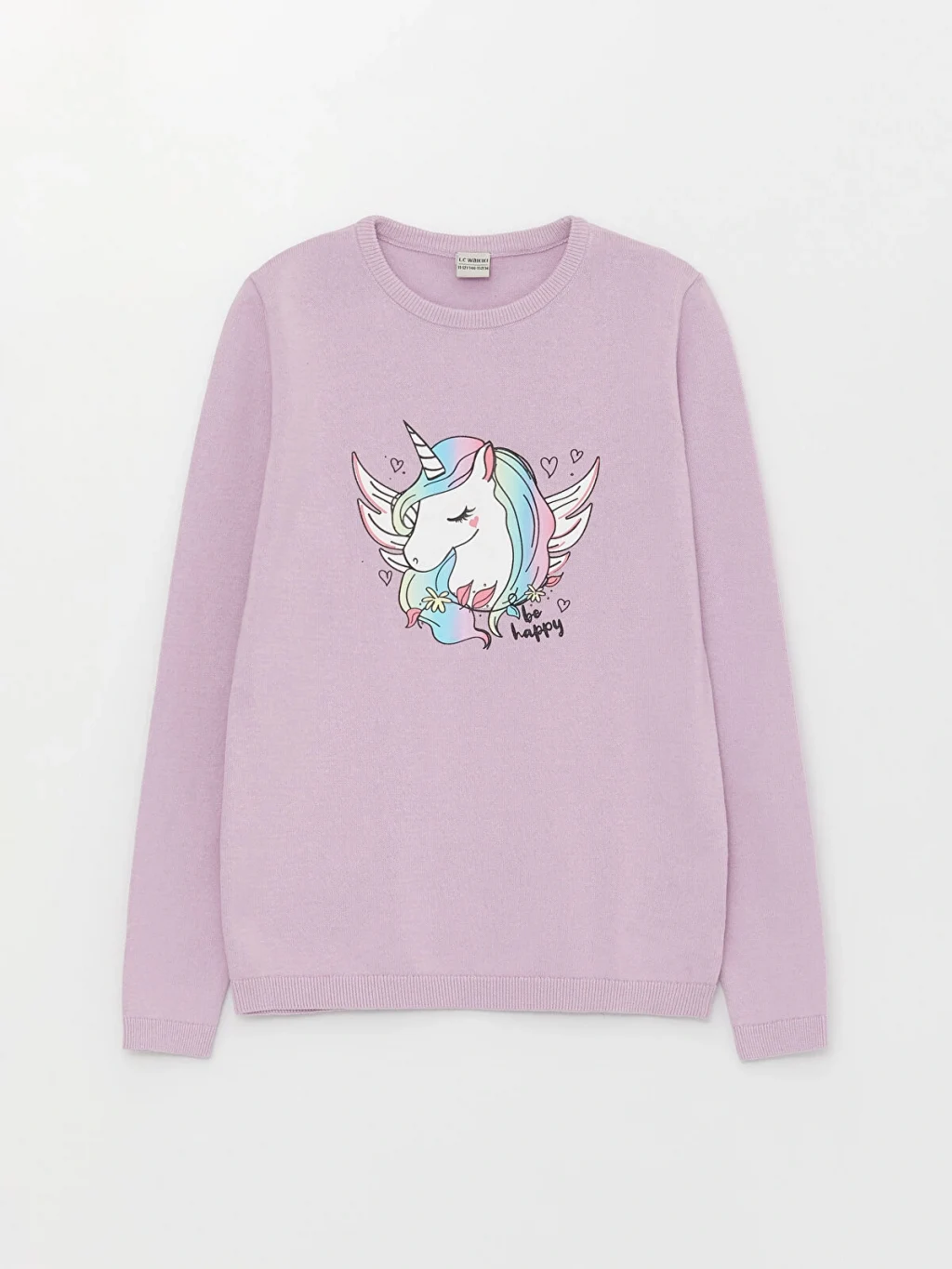 LCW Kids Lila Bisiklet Yaka Baskılı Uzun Kollu Kız Çocuk Triko Kazak