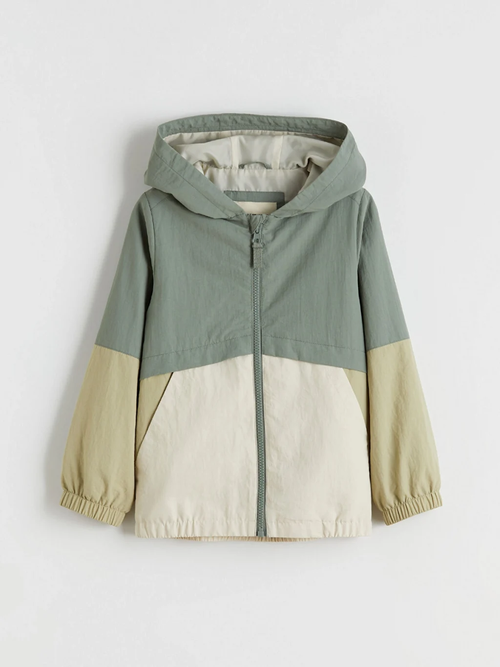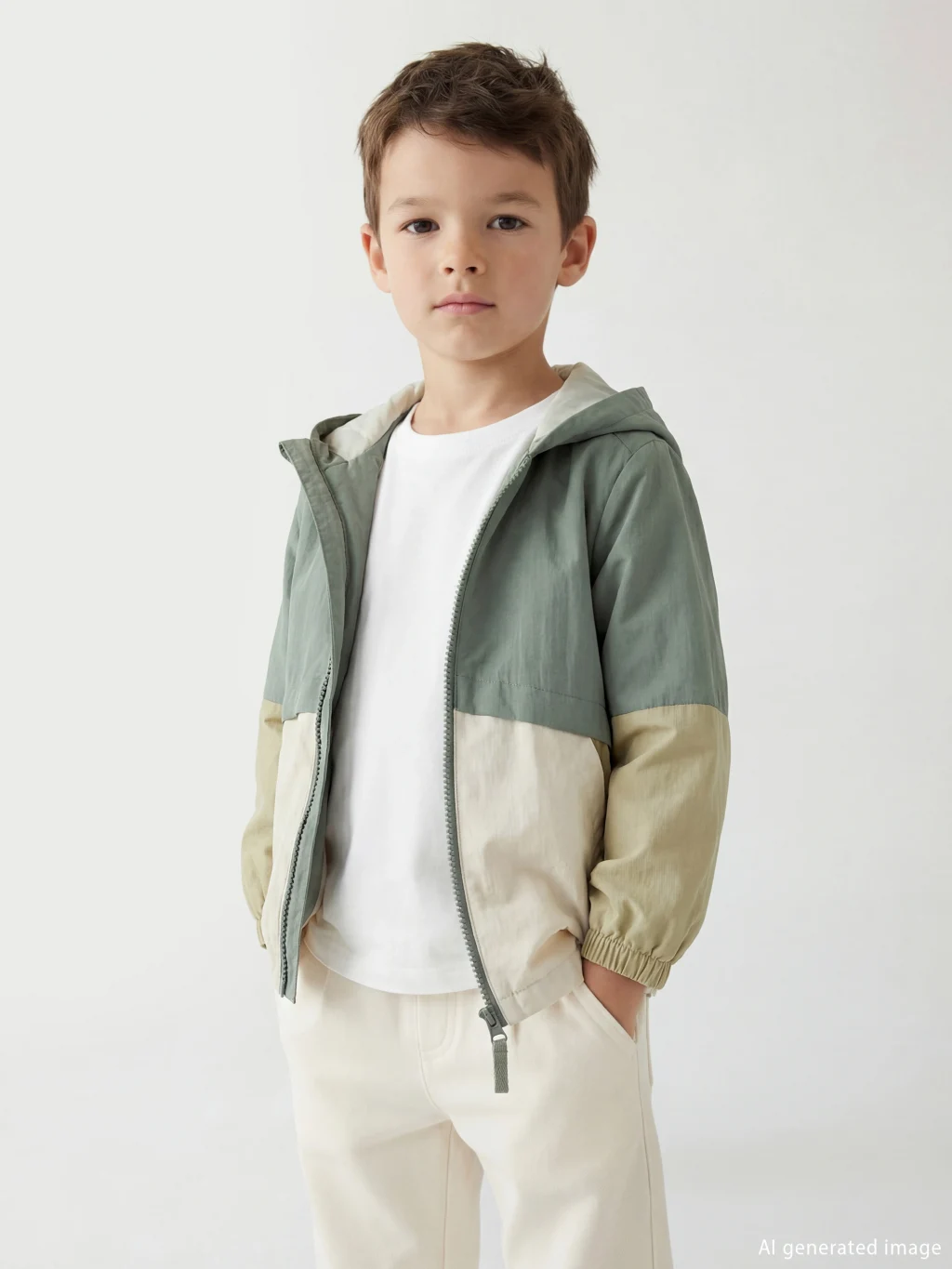 Krinkle kumaştan üretilen erkek çocuk mont, sabit kapüşonlu ve önden fermuar kapamalıdır. Yan cepleri bulunur, kol ve etek ucu lastiklidir.