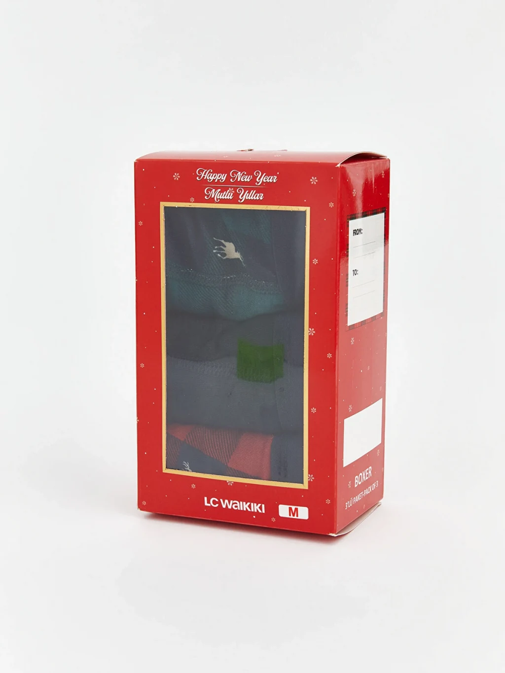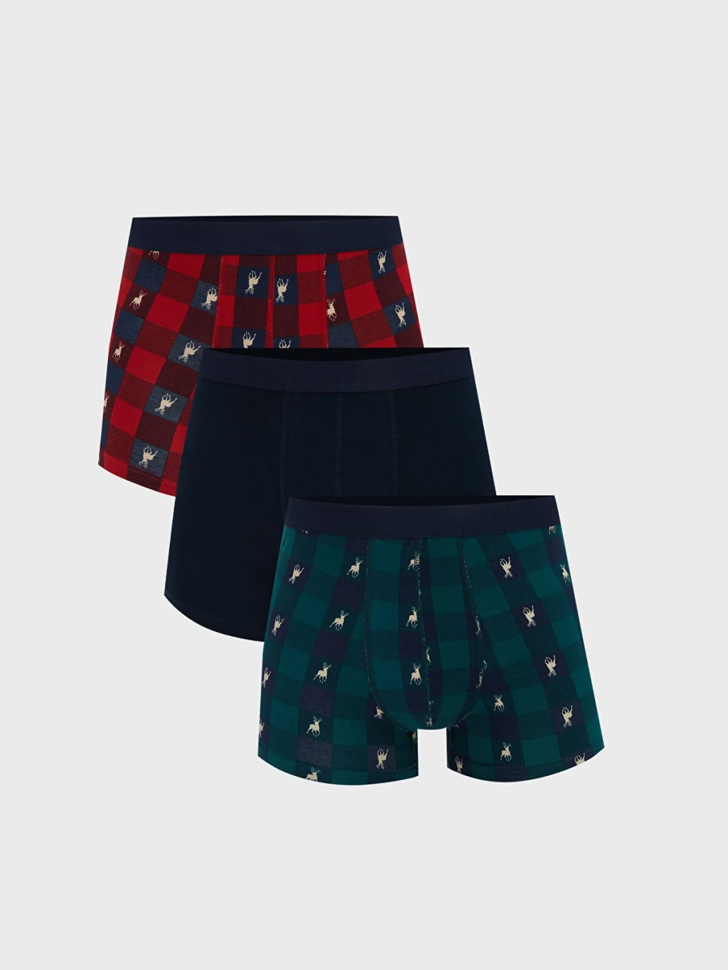 Erkek boxer, elastik bel bandına sahiptir. İkisi ekose ve hayvan figürü desenli, biri desensiz olmak üzere üç parçadan oluşur.