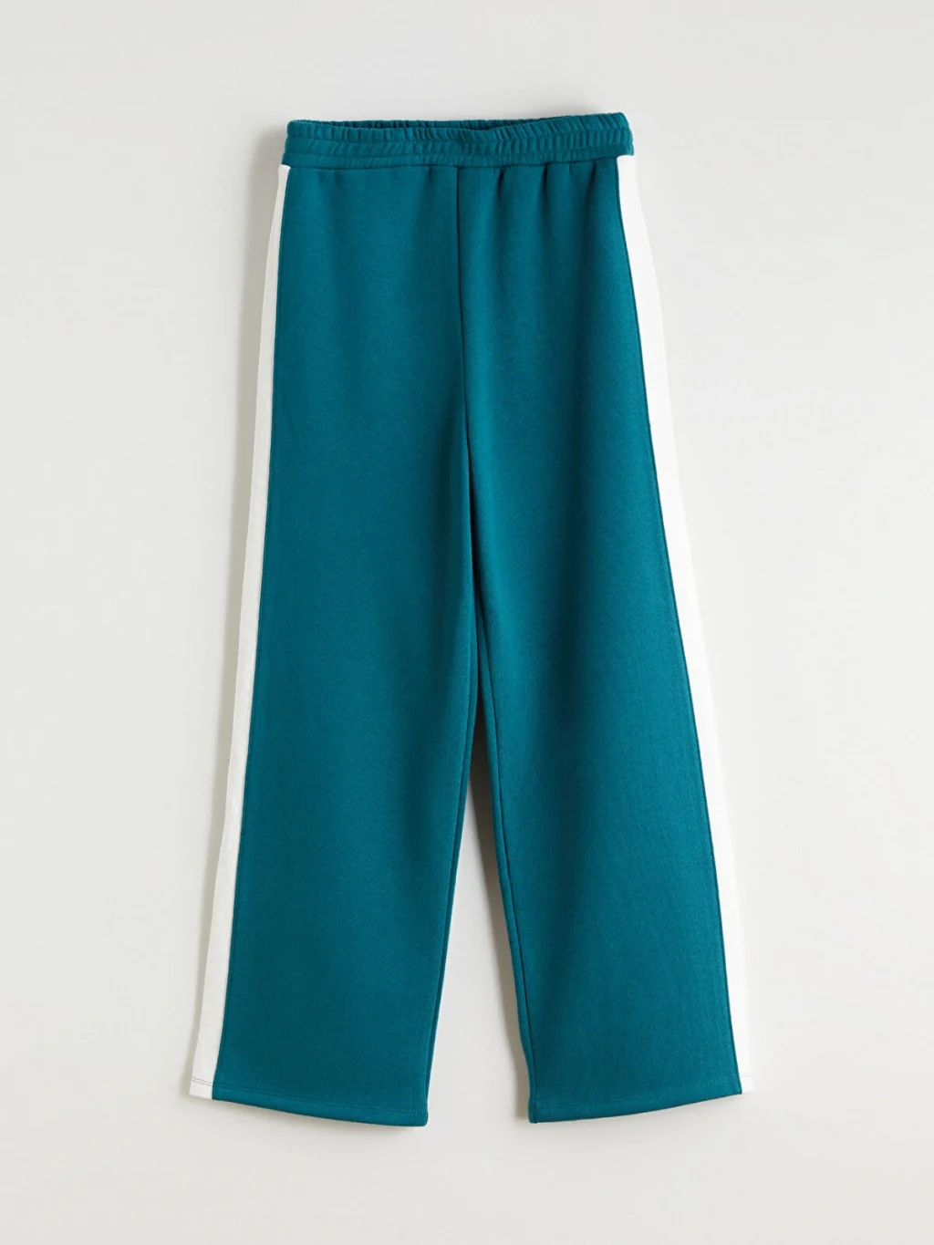 Kalın 3 iplik şardonlu kumaştan üretilen kız çocuk eşofman altı, lastikli bele ve düz paçalara sahiptir.