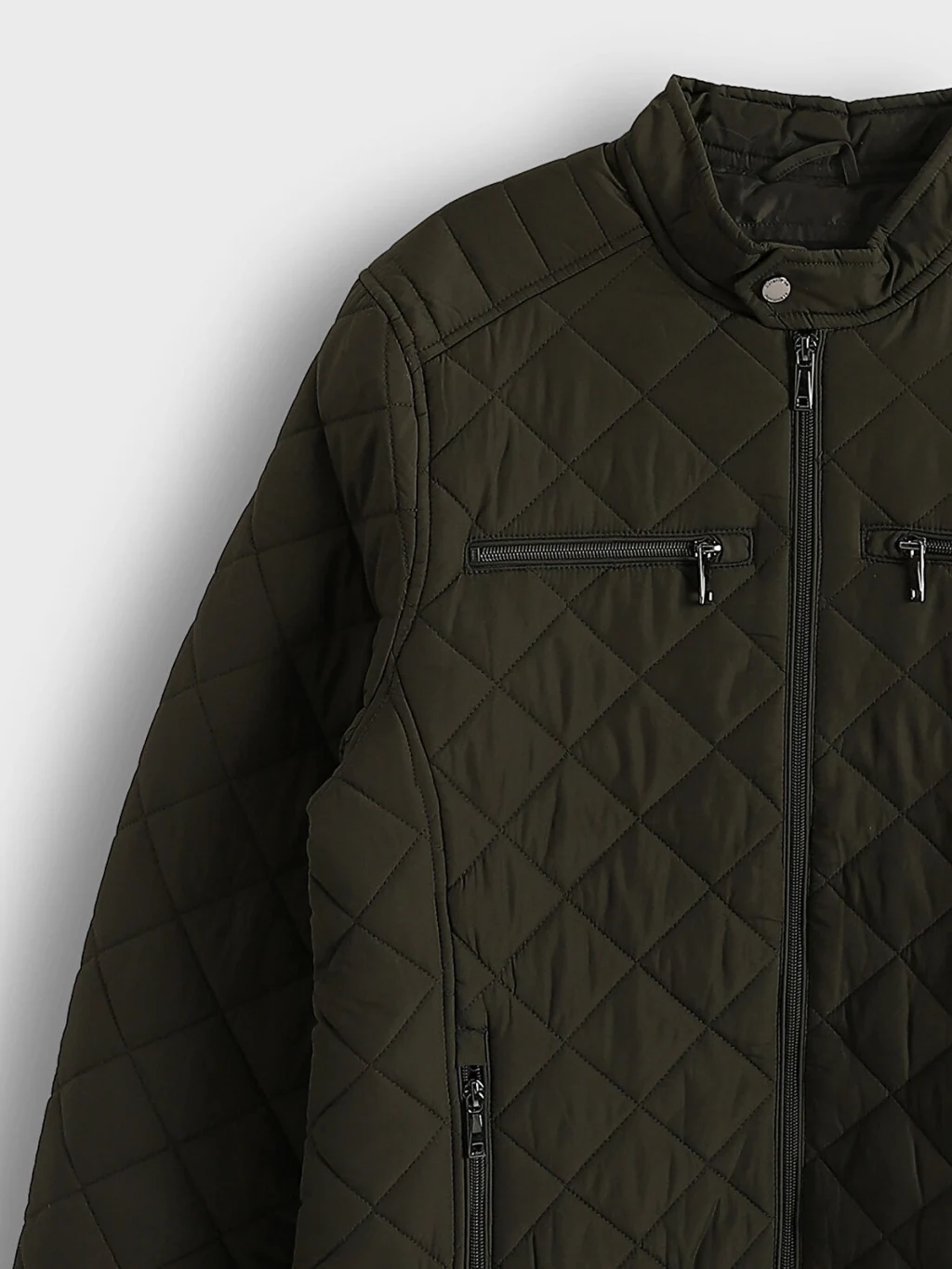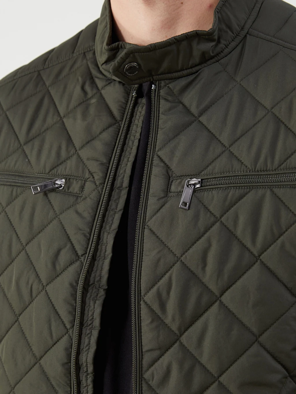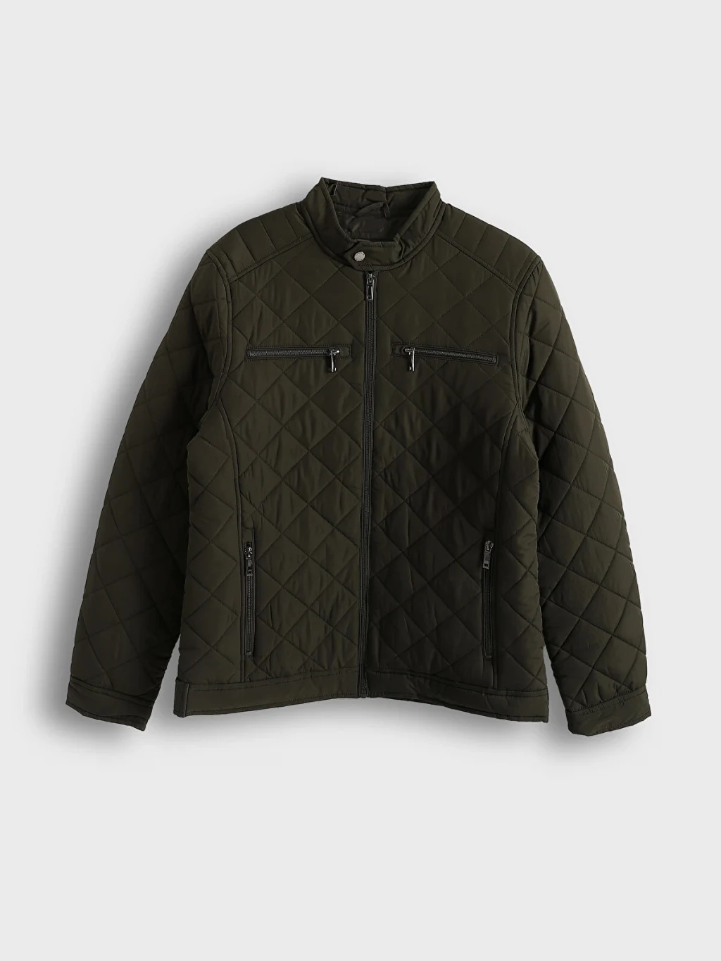 Şık ve rahat standart kalıp biker yaka erkek mont kapitoneli tasarımıyla hem günlük hem de özel günler için ideal. Orta kalınlıkta kumaşıyla konforlu bir kullanım sunar.