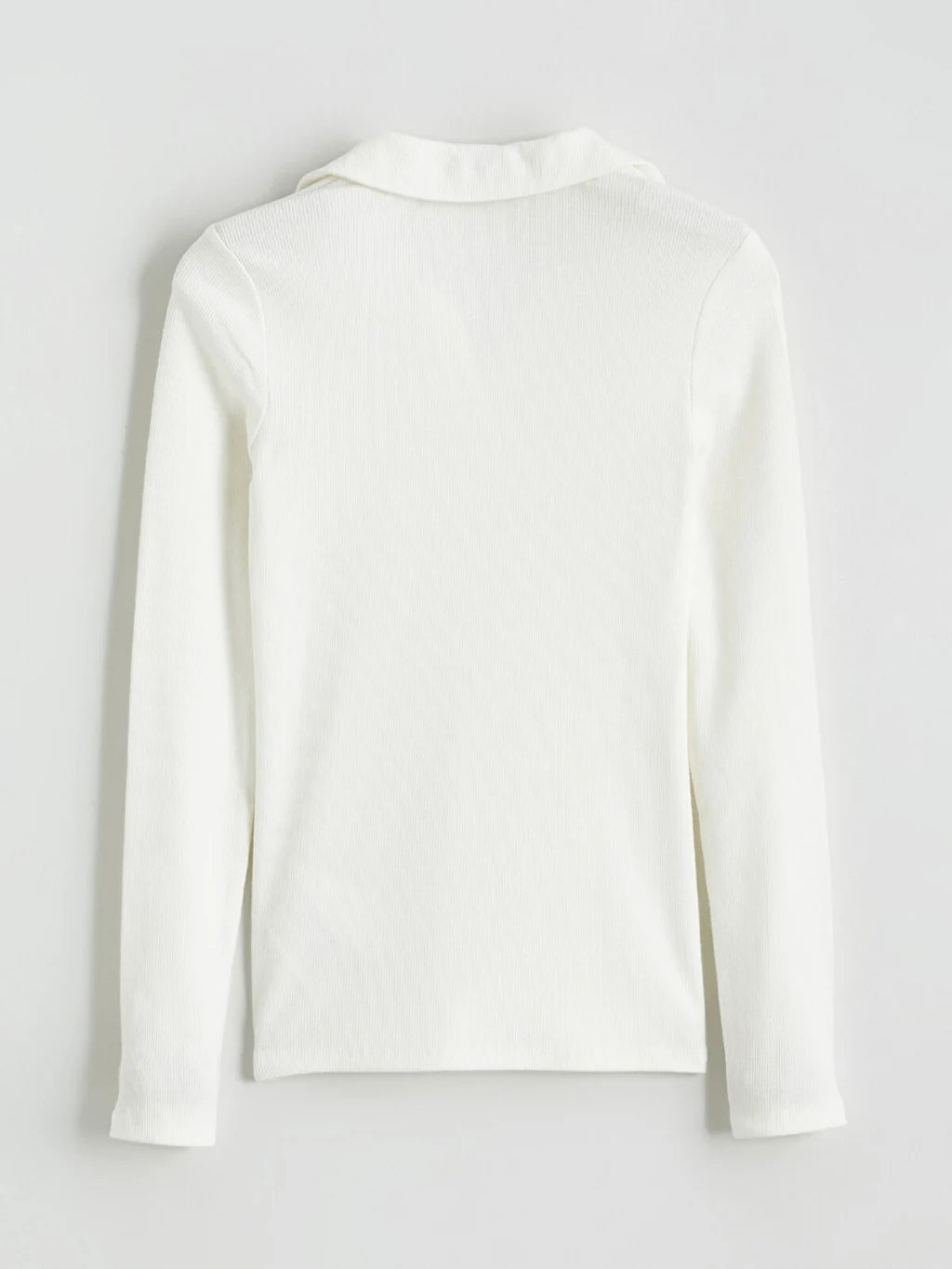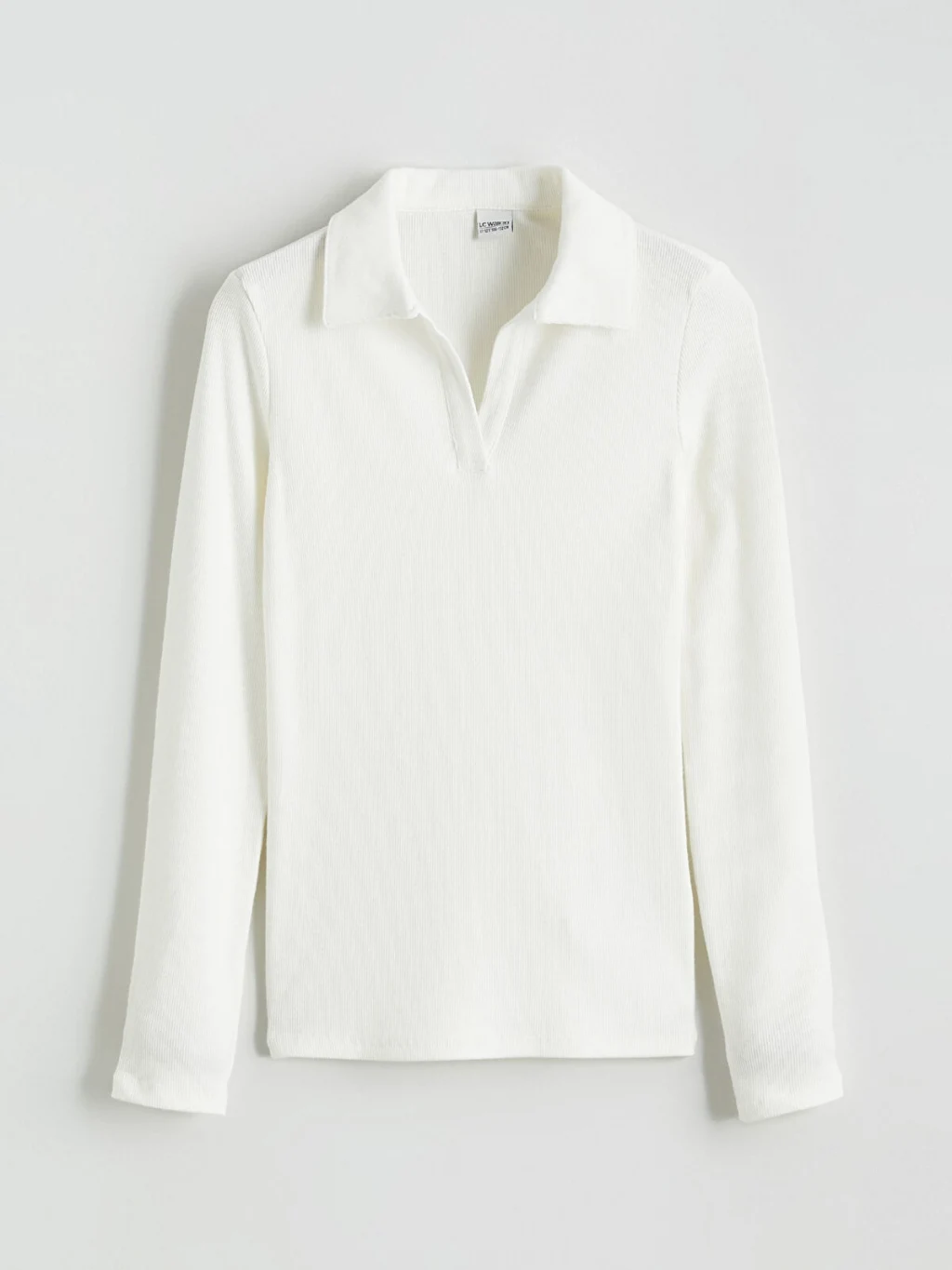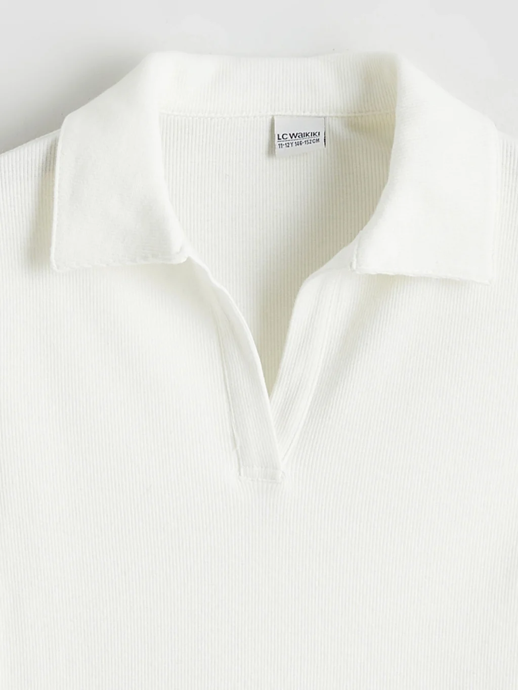 Polo yakalı ve uzun kollu kız çocuk tişört, yüksek pamuk içerikli kaşkorse kumaştan üretilmiştir ve dar kalıplıdır.