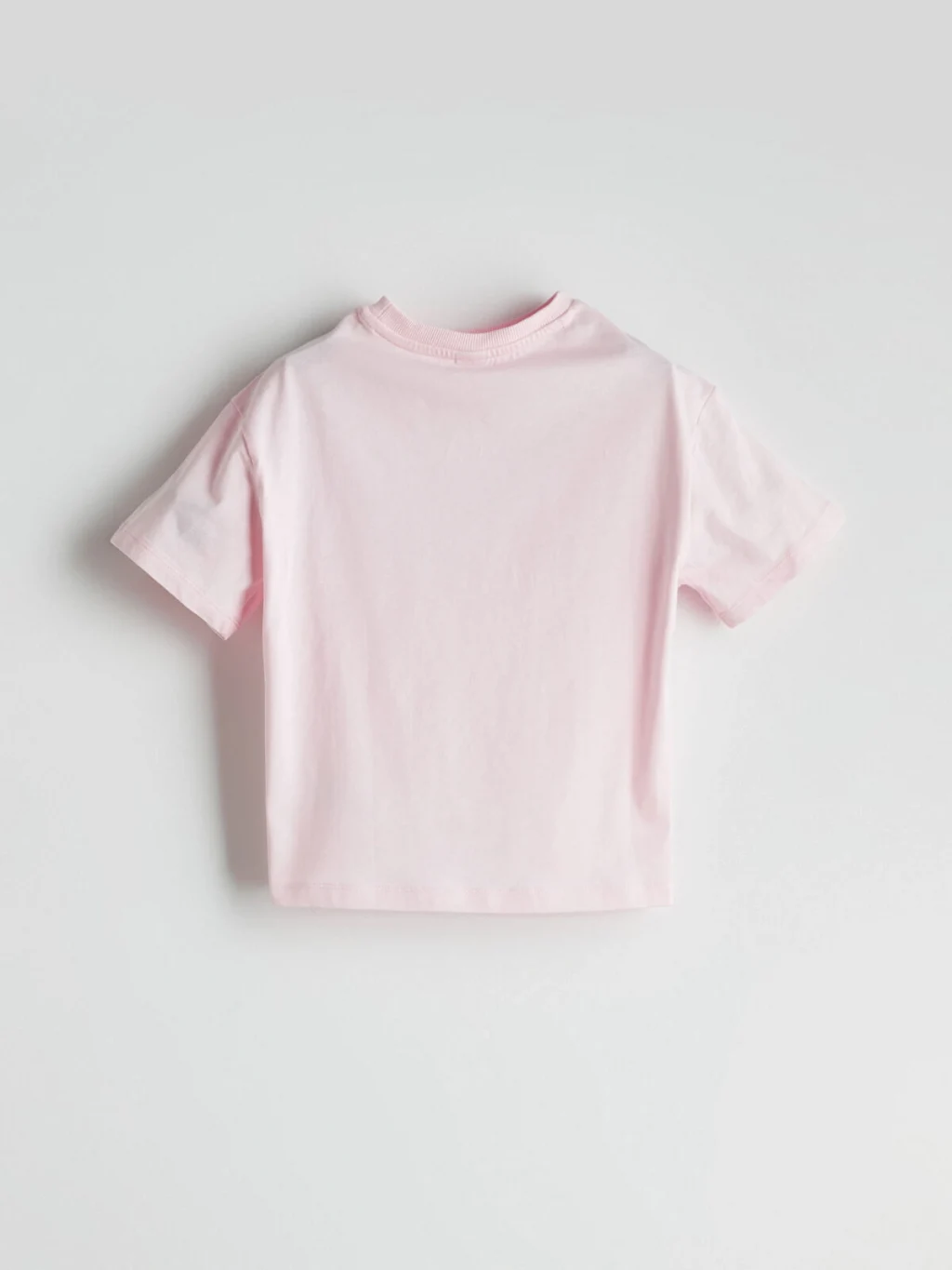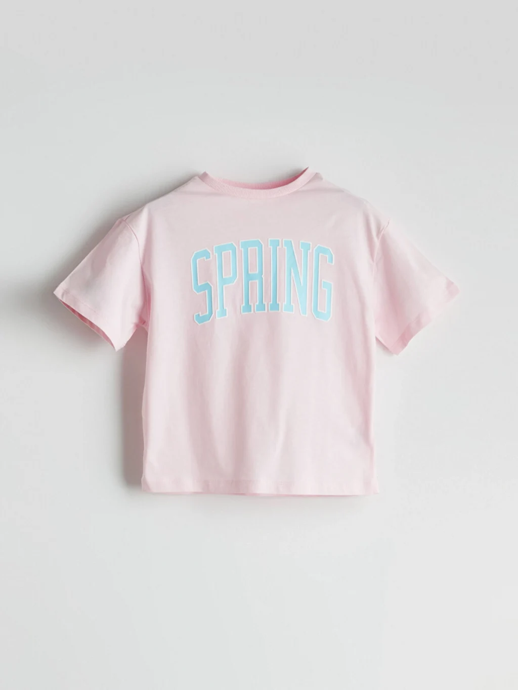 Bisiklet yaka, kısa kollu kız çocuk tişört, %100 pamuklu penye kumaştan üretilmiştir. Bol kalıplı ürünün ön yüzünde yazı baskısı bulunur.