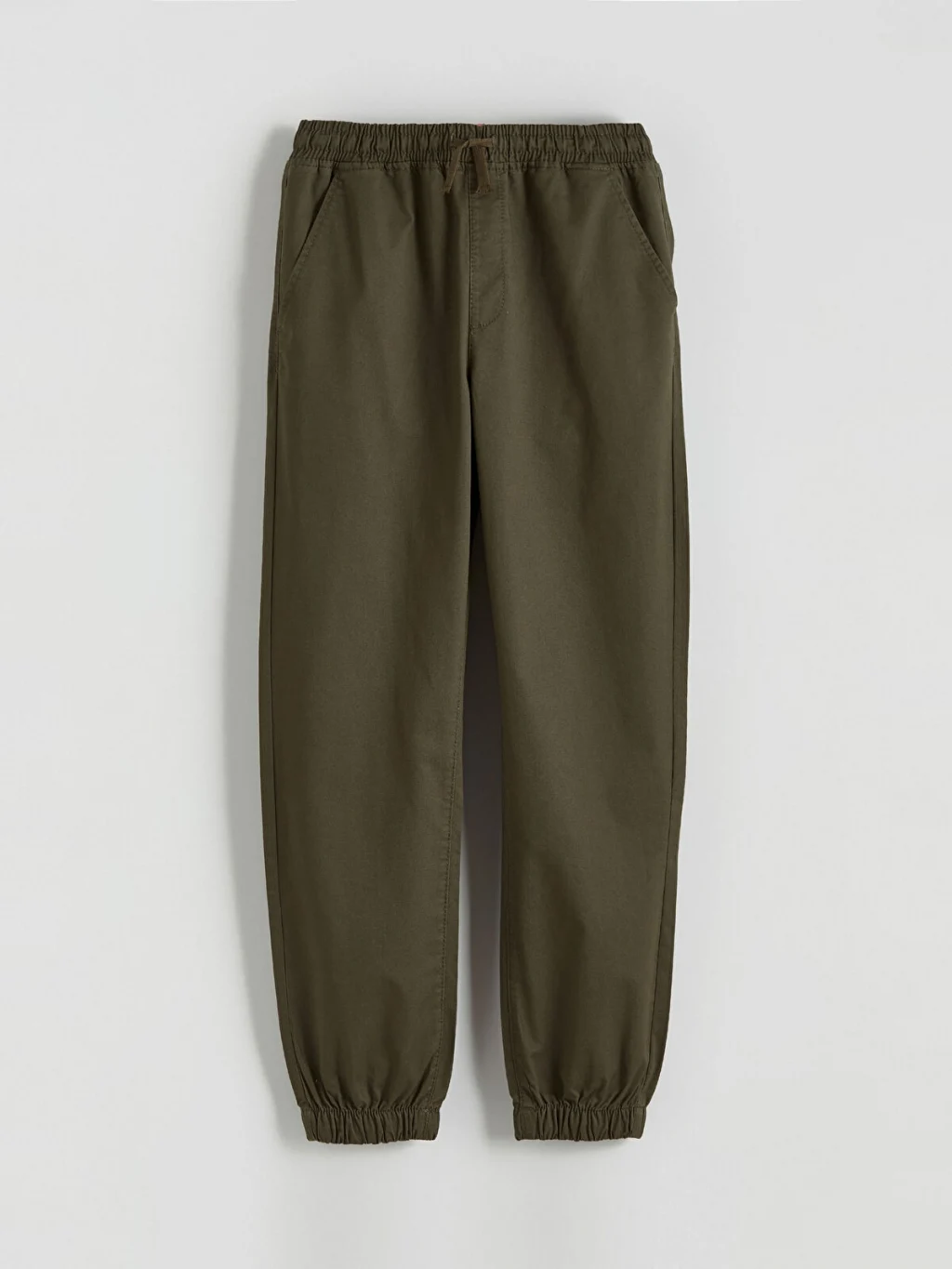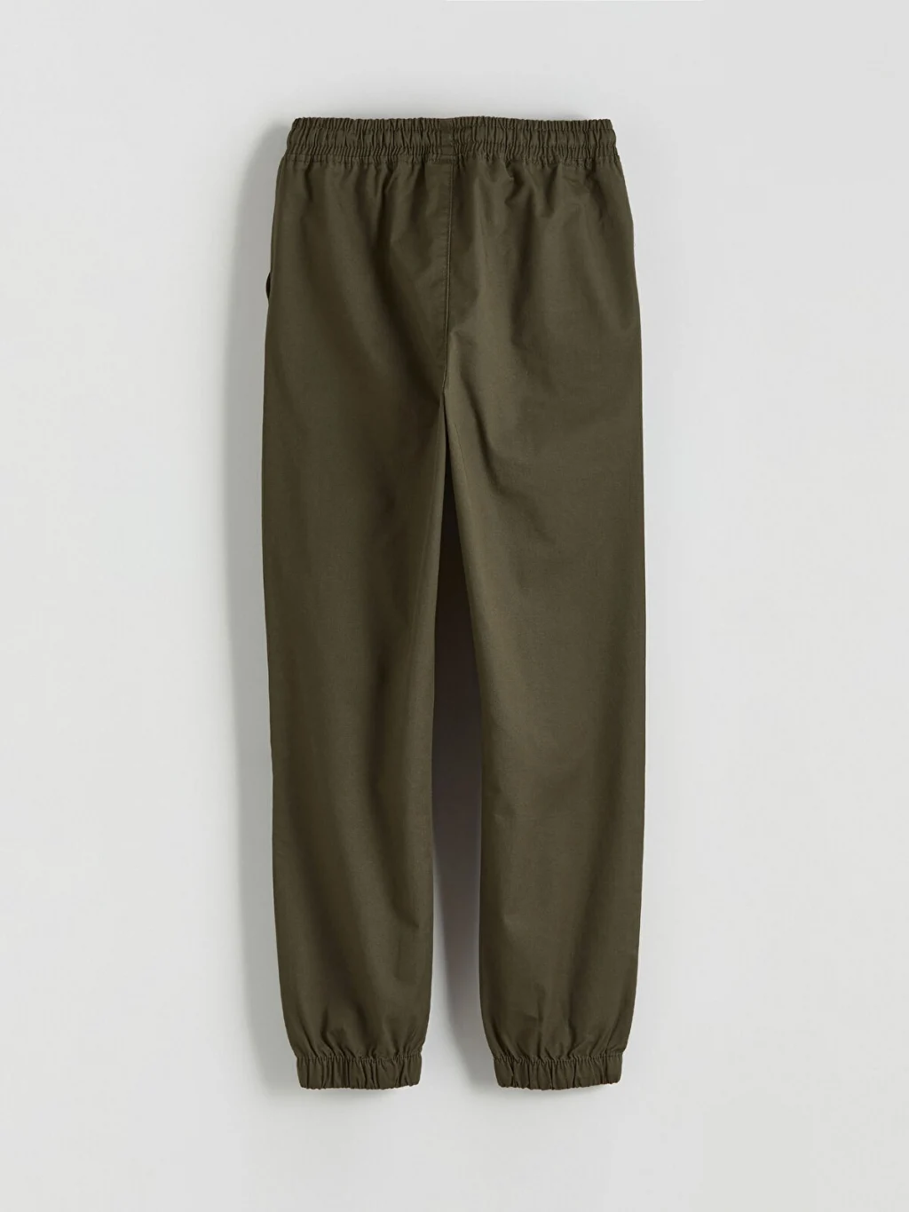 Erkek çocuk pantolon, %100 pamuklu gabardin kumaştan üretilmiştir. Beli lastikli ve ayarlanabilir bağcıklıdır, paçaları lastiklidir ve yan cepleri bulunur.