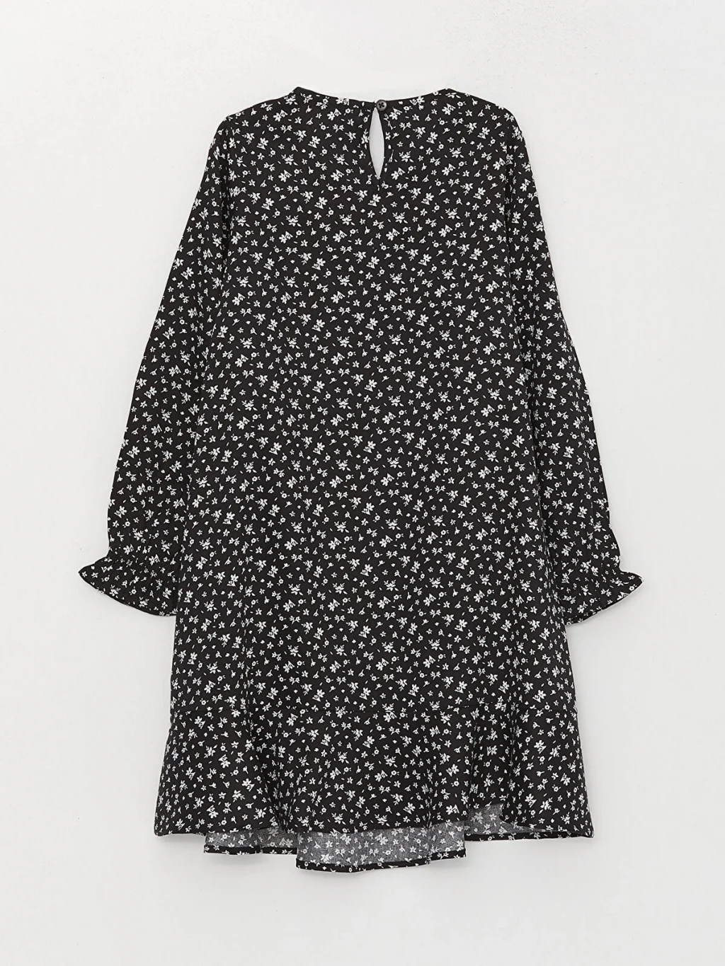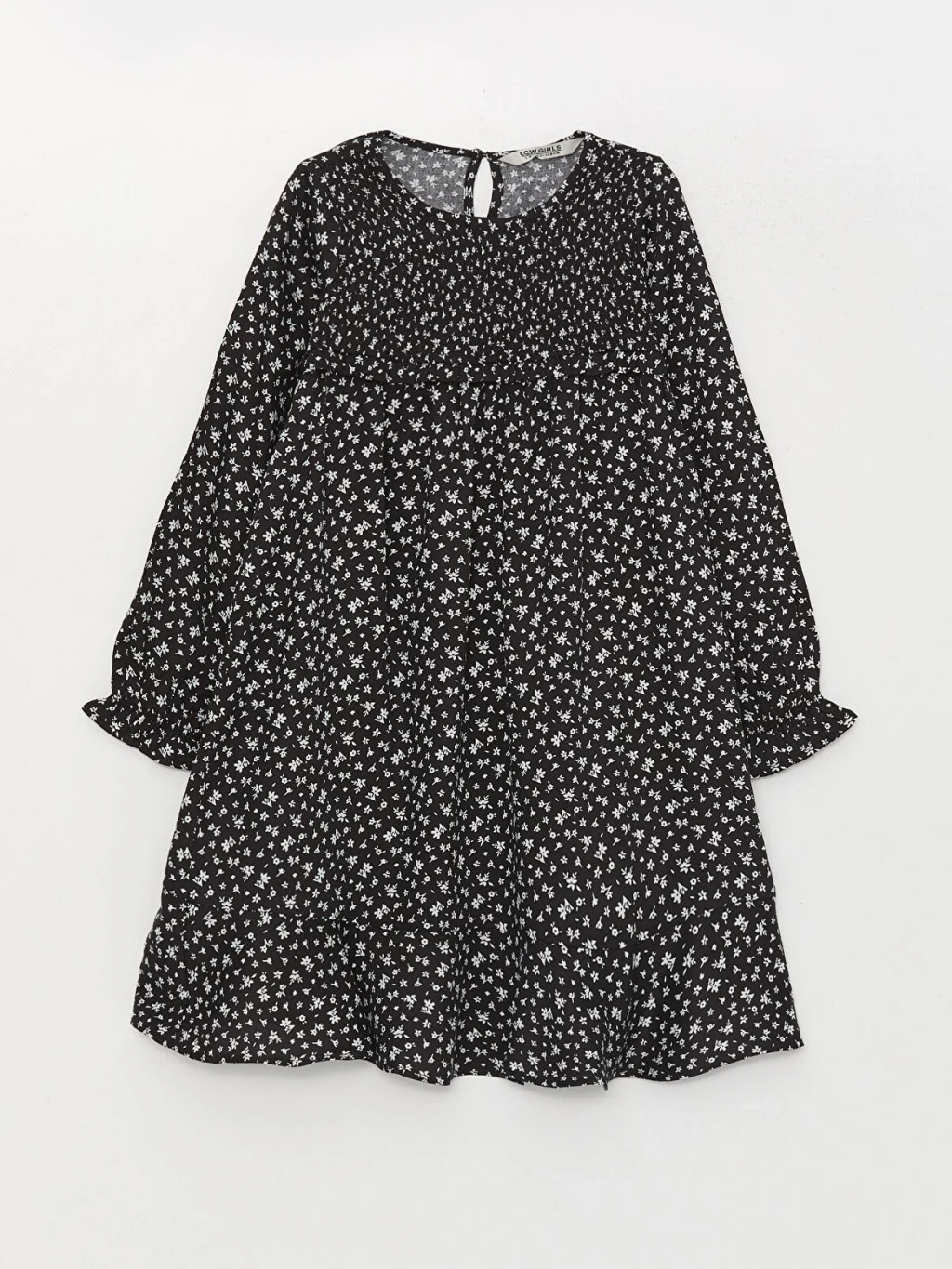LCW Kids Siyah Bisiklet Yaka Baskılı Uzun Kollu Kız Çocuk Tişört