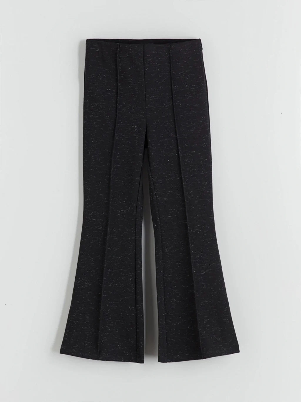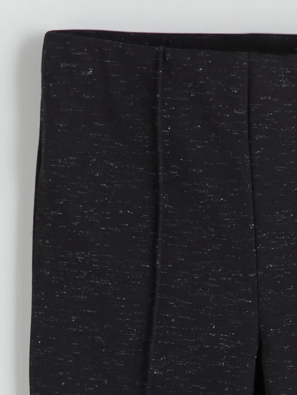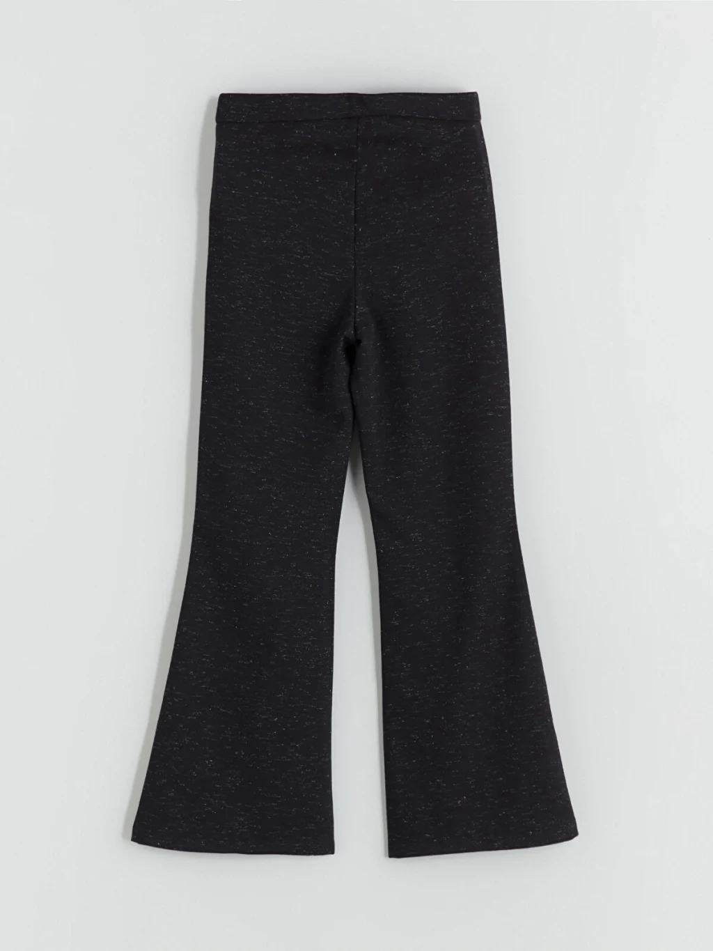 Beli lastikli kız çocuk tayt, İspanyol paça kesimlidir ve ön bacaklarında boydan dikiş detayı bulunur.
