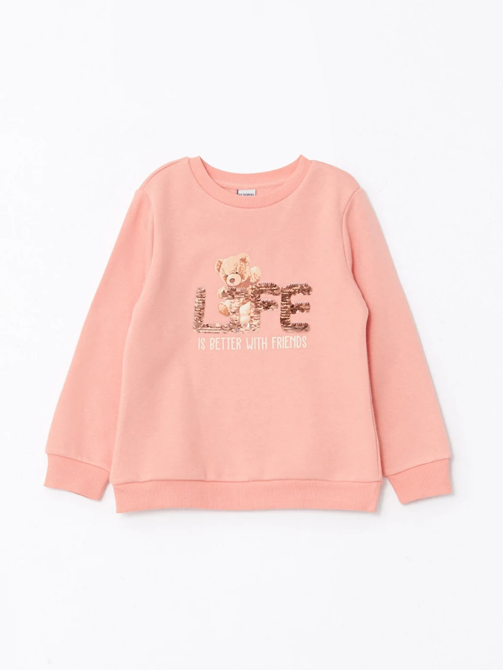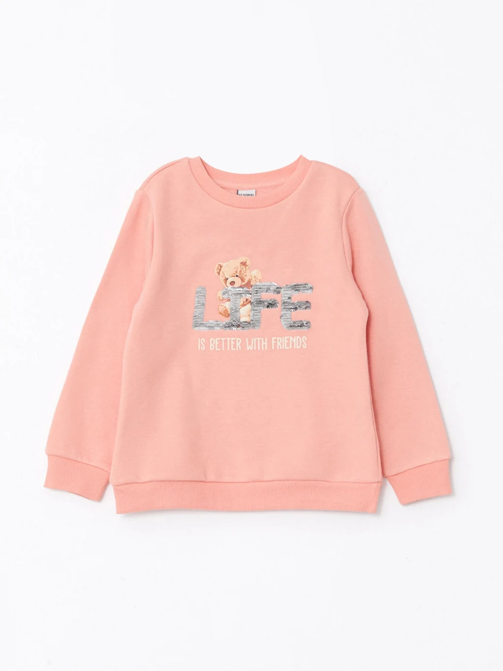 LCWAIKIKI Basic Turuncu Bisiklet Yaka Baskılı Uzun Kollu Oversize Kadın Sweatshirt