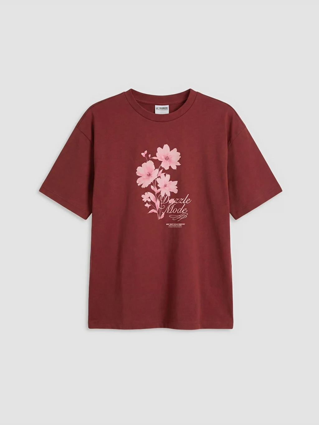 LCW Kids Bordo Bisiklet Yaka Baskılı Kız Çocuk Tişört