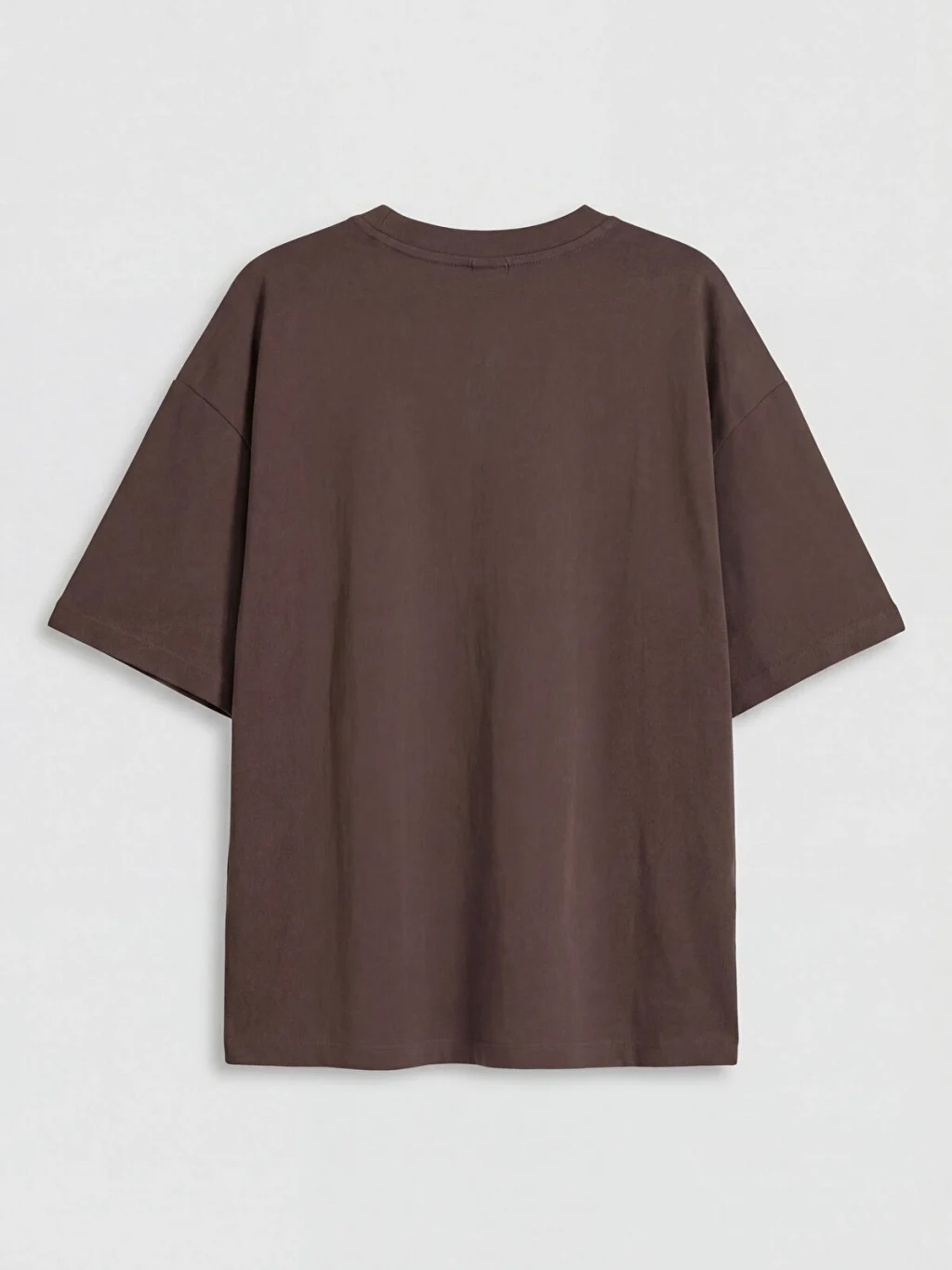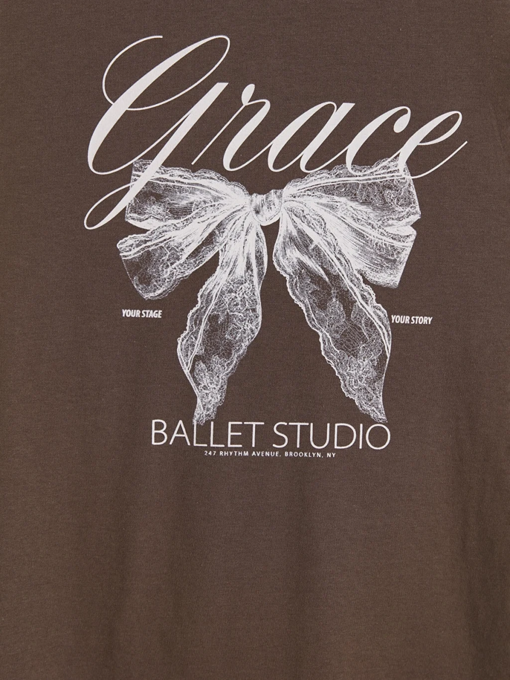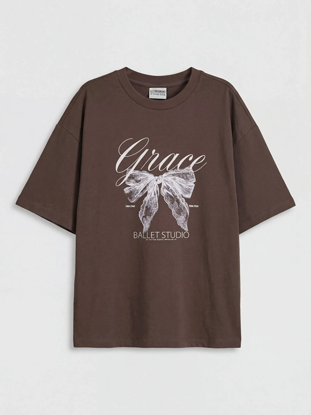 LCW Kids Kahverengi Bisiklet Yaka Baskılı Kız Çocuk Tişört