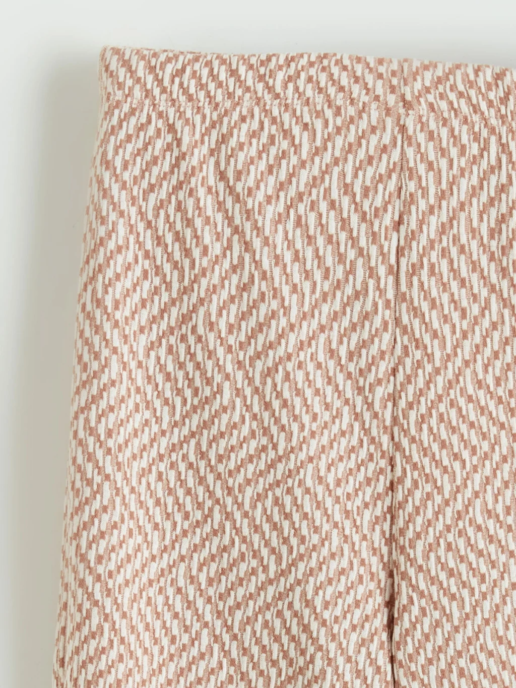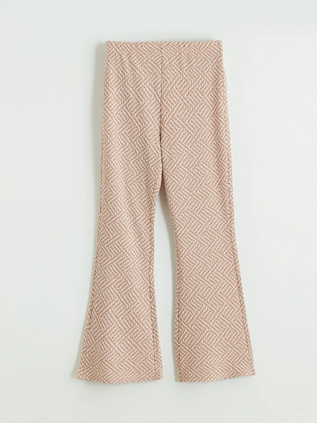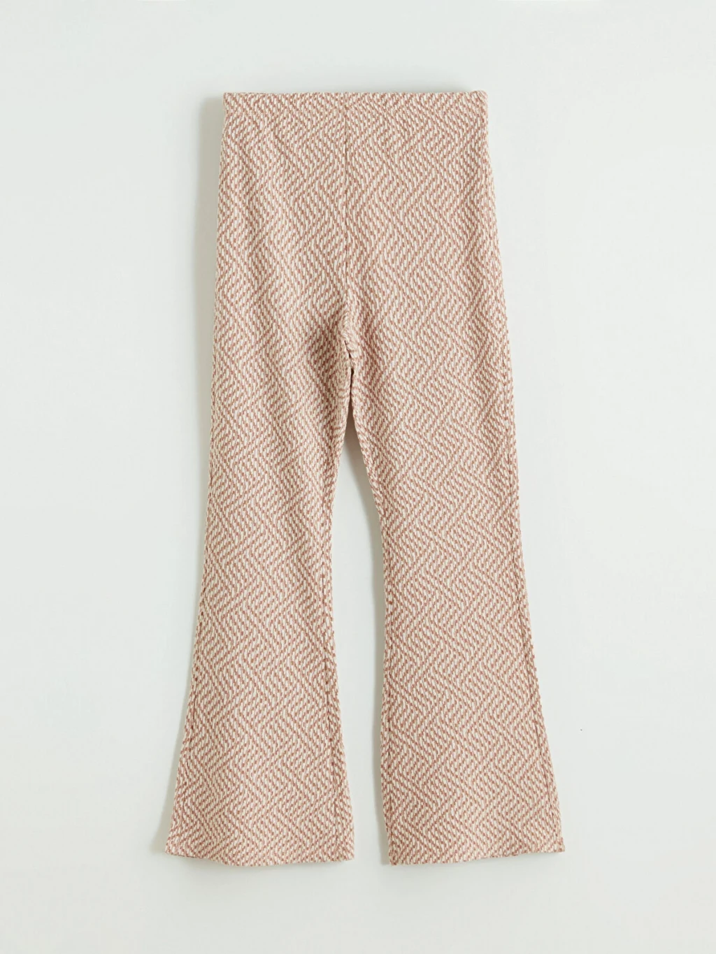 Beli lastikli, ispanyol paça kesimli kız çocuk tayt, desenli jakar kumaştan üretilmiştir.