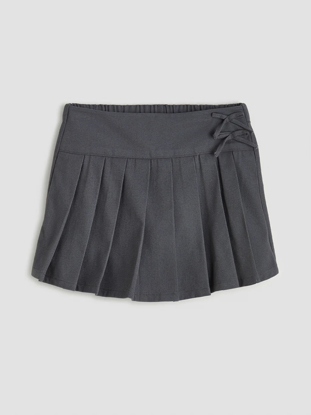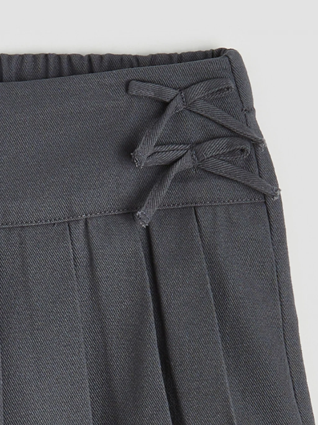 Kız çocuk etek, gabardin kumaştan üretilmiştir. Beli lastiklidir, pileli tasarıma sahiptir ve yanında bağcık detayı bulunur.