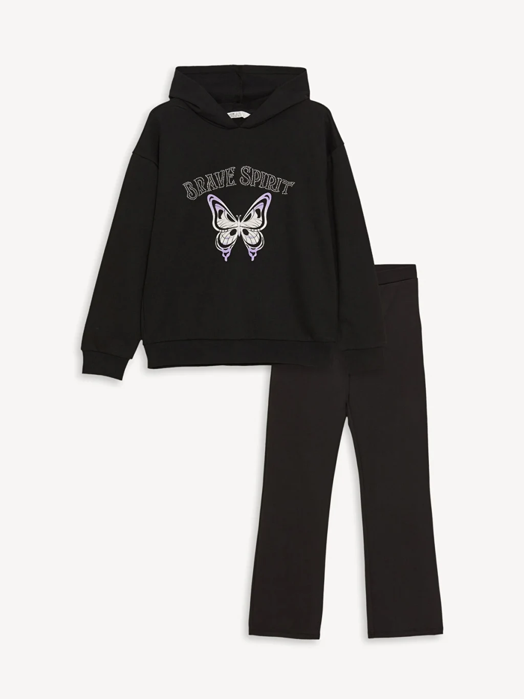 Rahat kalıp sweatshirt ve dar kalıp tayttan oluşan 2'li takım yumuşak dokulu 3 iplik kumaştan üretimiştir. Şık görünümün yanı sıra rahatlık sunan takım, hareket özgürlüğü ve konfor sağlar.