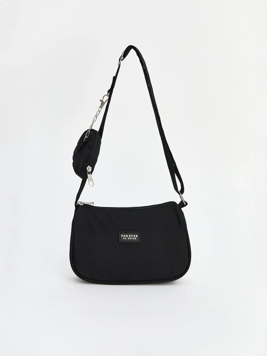 Ayarlanabilir askılı kız çocuk omuz çantası, fermuar kapamalı ana bölmeye ve çıkarılabilir ek cüzdana sahiptir.