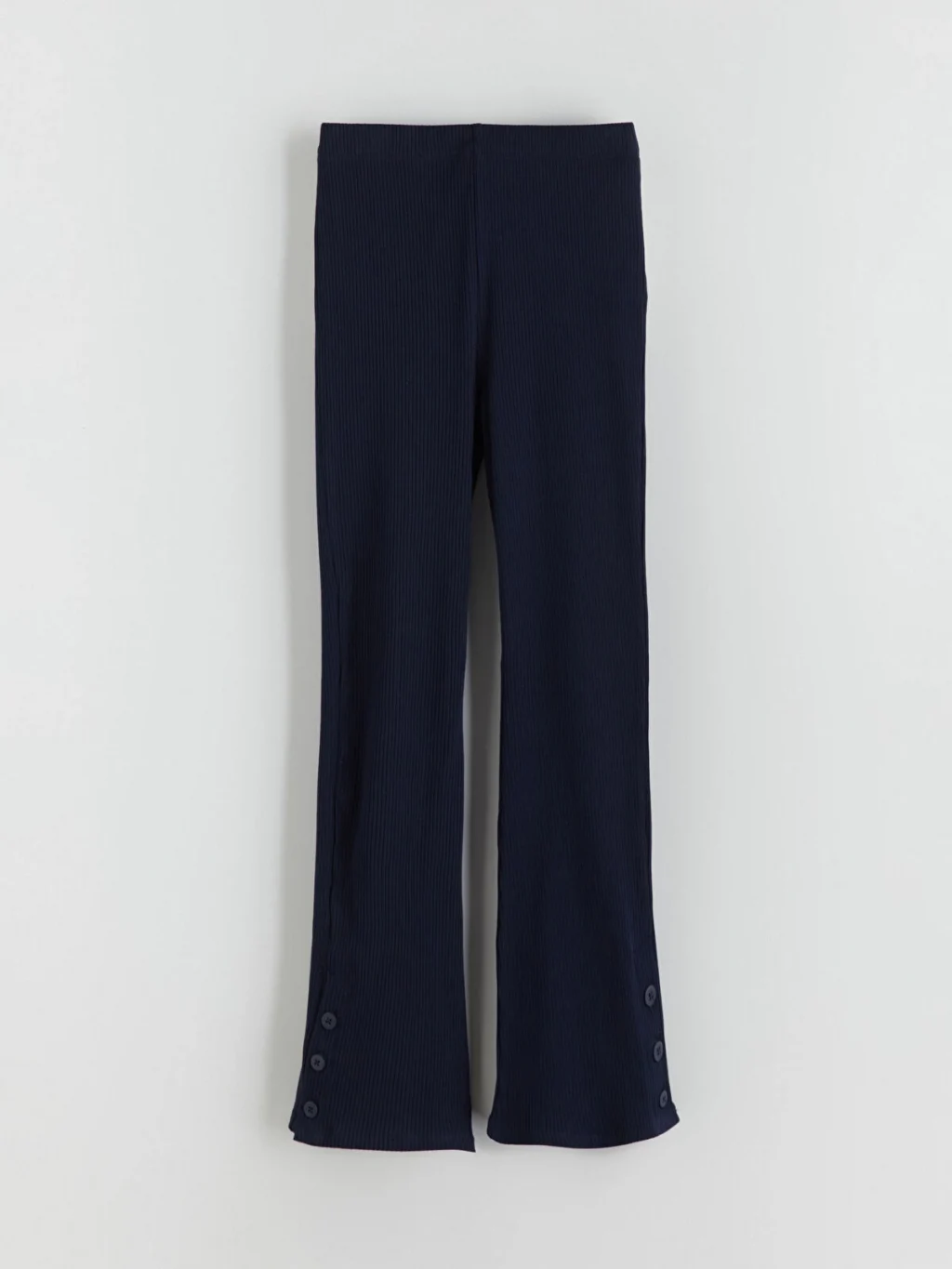 Pamuklu esnek kumaştan üretilen kız çocuk tayt, ispanyol paça ve beli lastikli tasarıma sahiptir.