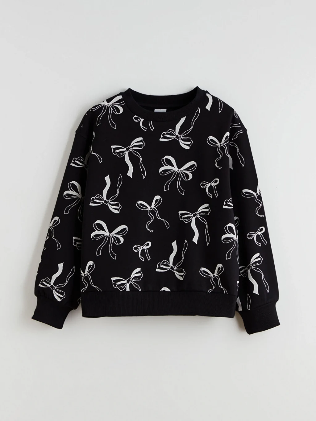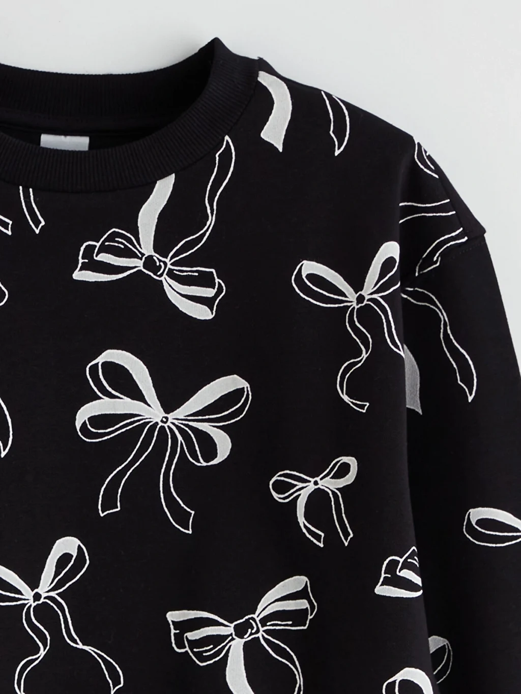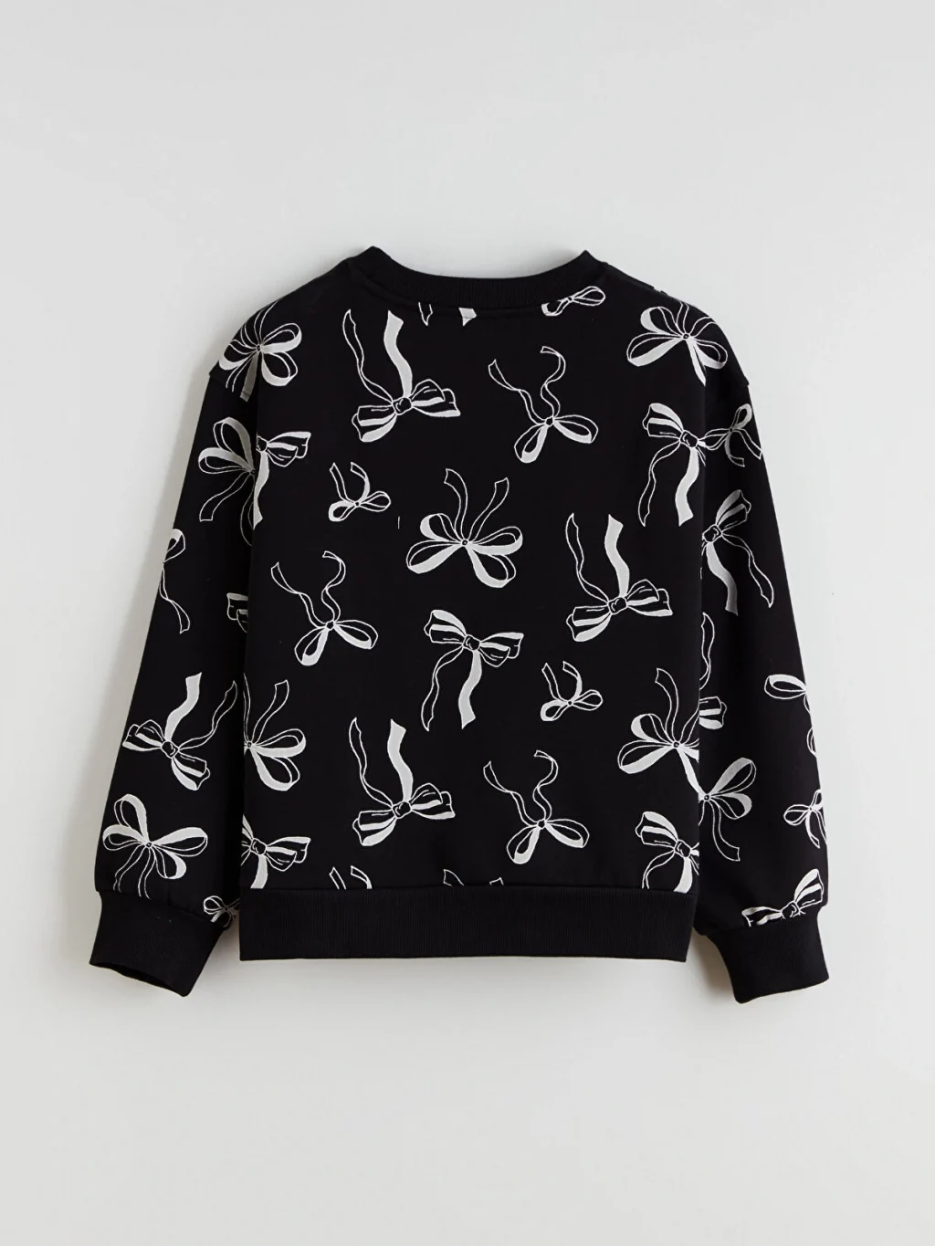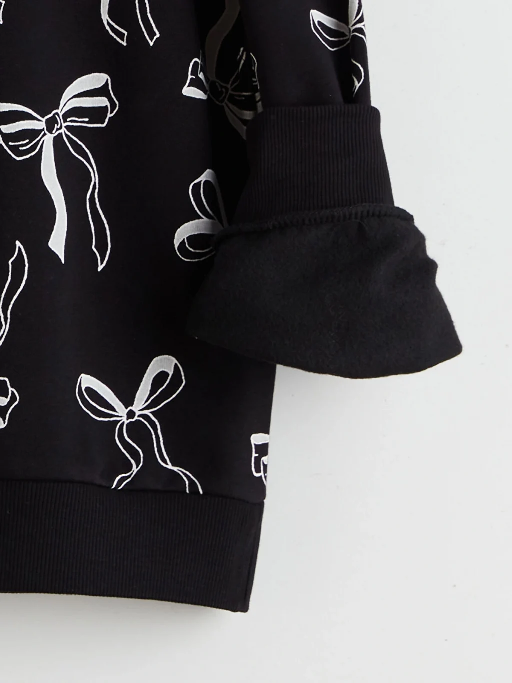 3 iplik şardonlu kumaştan üretilen 2'li kız çocuk sweatshirt, fiyonk baskılı ve düz tasarıma sahiptir. Bisiklet yakalıdır.
