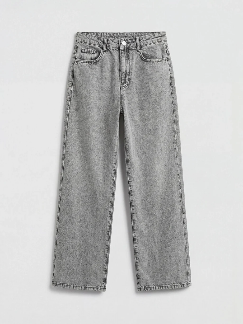 Wideleg kız çocuk jean pantolon, %100 pamuk içerikli denim kumaştan üretilmiştir. Beş cepli tasarıma sahiptir, fermuar ve düğme ile kapanır.