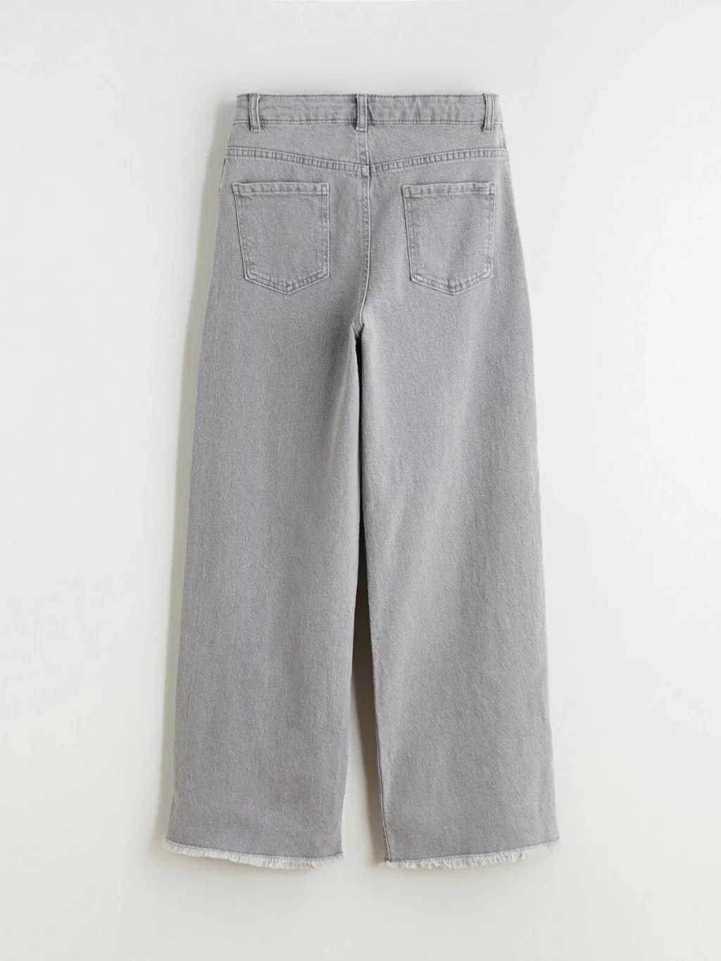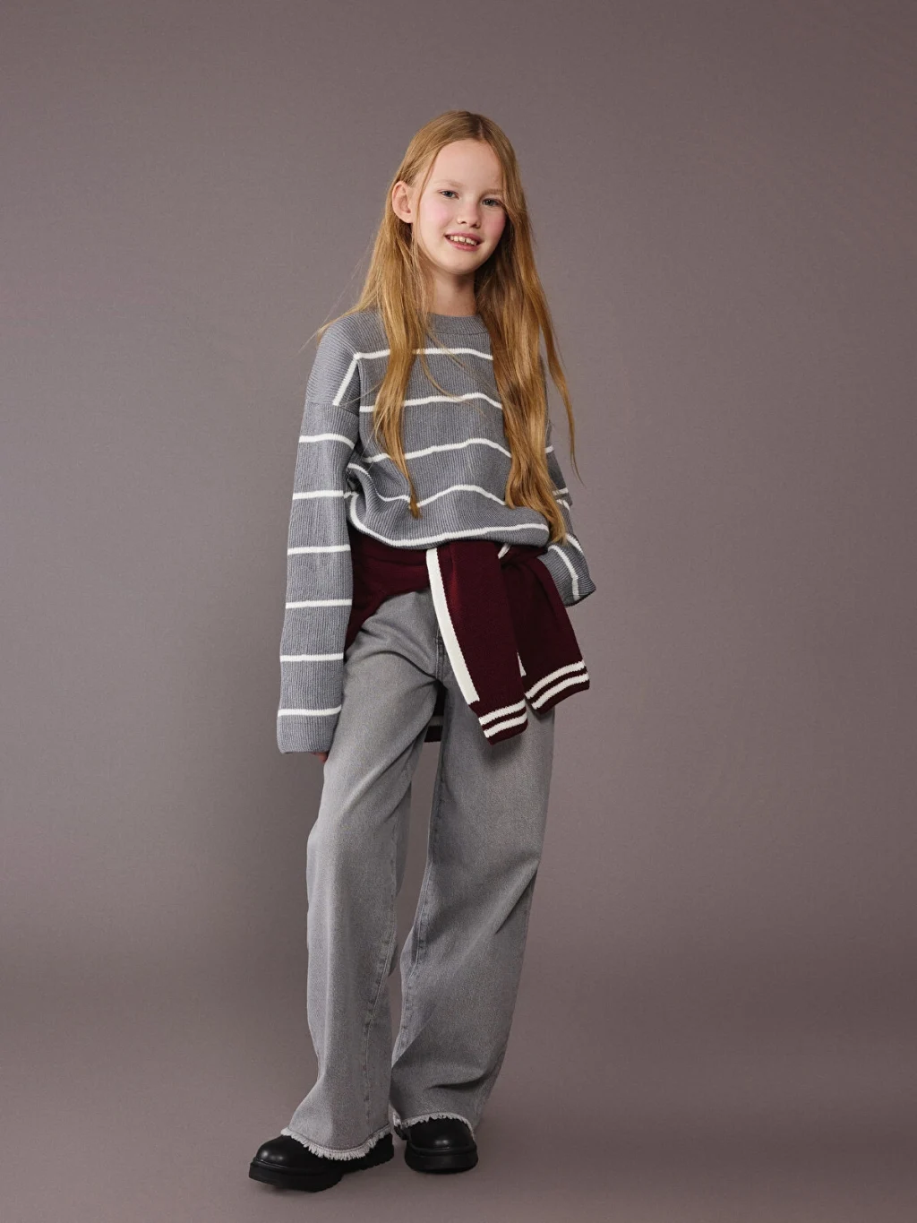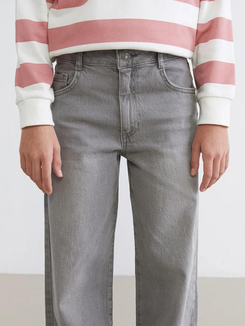 Wideleg Jean pantolon, belden paçaya doğru genişleyen bir kesime sahiptir. İçten lastikli bel detayı ile çocuğunuz büyüdükçe uygun ölçüde kullanım kolaylığı ve trend bir görünüm sunar.