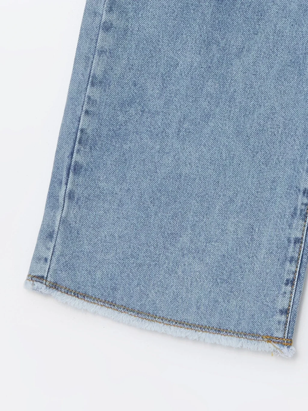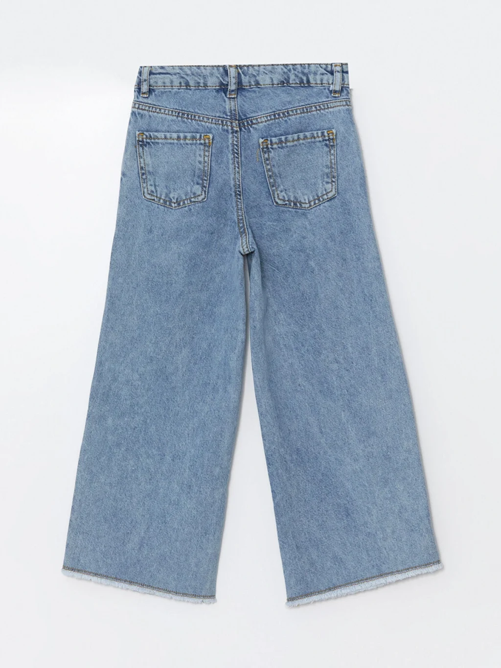 Wideleg Jean pantolon, belden paçaya doğru genişleyen bir kesime sahiptir. İçten lastikli bel detayı ile çocuğunuz büyüdükçe uygun ölçüde kullanım kolaylığı ve trend bir görünüm sunar.